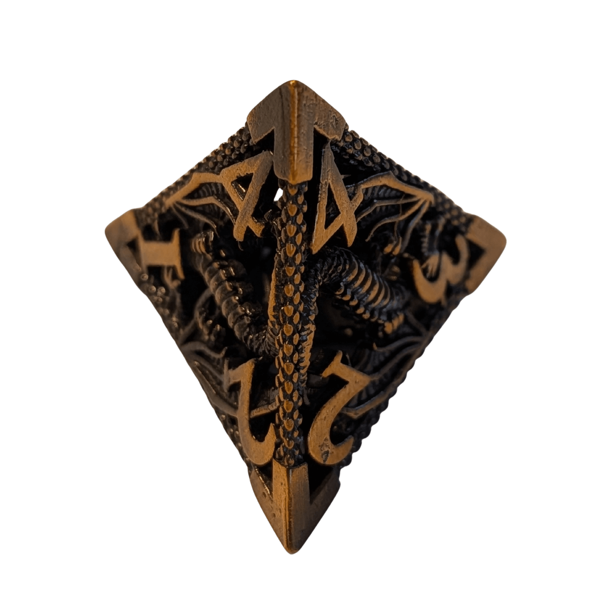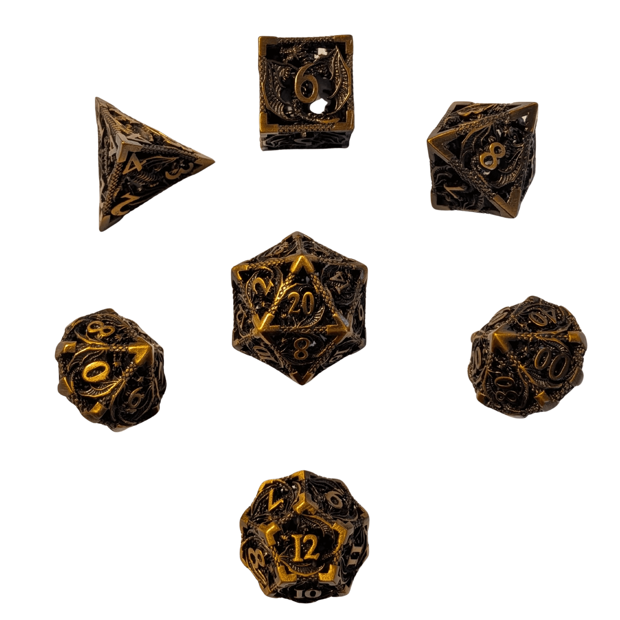 Metallwürfel mit fliegenden Drachen - Antikes Gold/Ancient Gold - 18mm Set