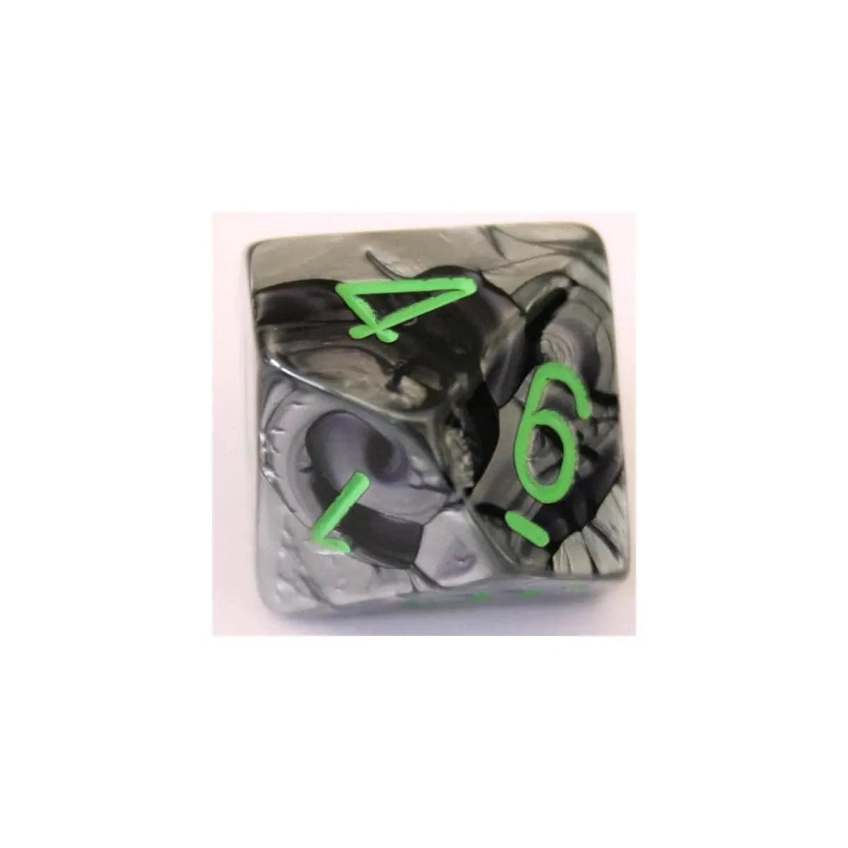Der Chessex Gemini Black-Grey W10 ist ideal für prozentuale Würfe. Die harmonische Mischung der Farben des W10 sorgt dafür, dass die grünen Zahlen klar hervorstechen.