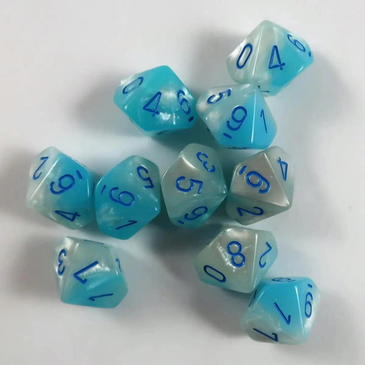 Chessex Gemini pearl turquoise-white 10 x W10 Set