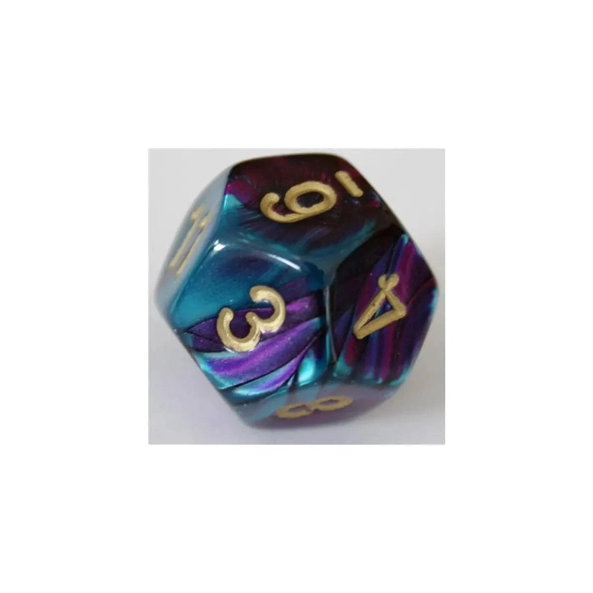 Der zwölfseitige Chessex Gemini Purple-Teal bringt den Farbverlauf besonders gut zur Geltung und macht jede Seite zu einem Blickfang. Die goldenen Ziffern setzen dabei edle Akzente. Ideal für etwas mehr Eleganz am Rollenspiel-Abend.