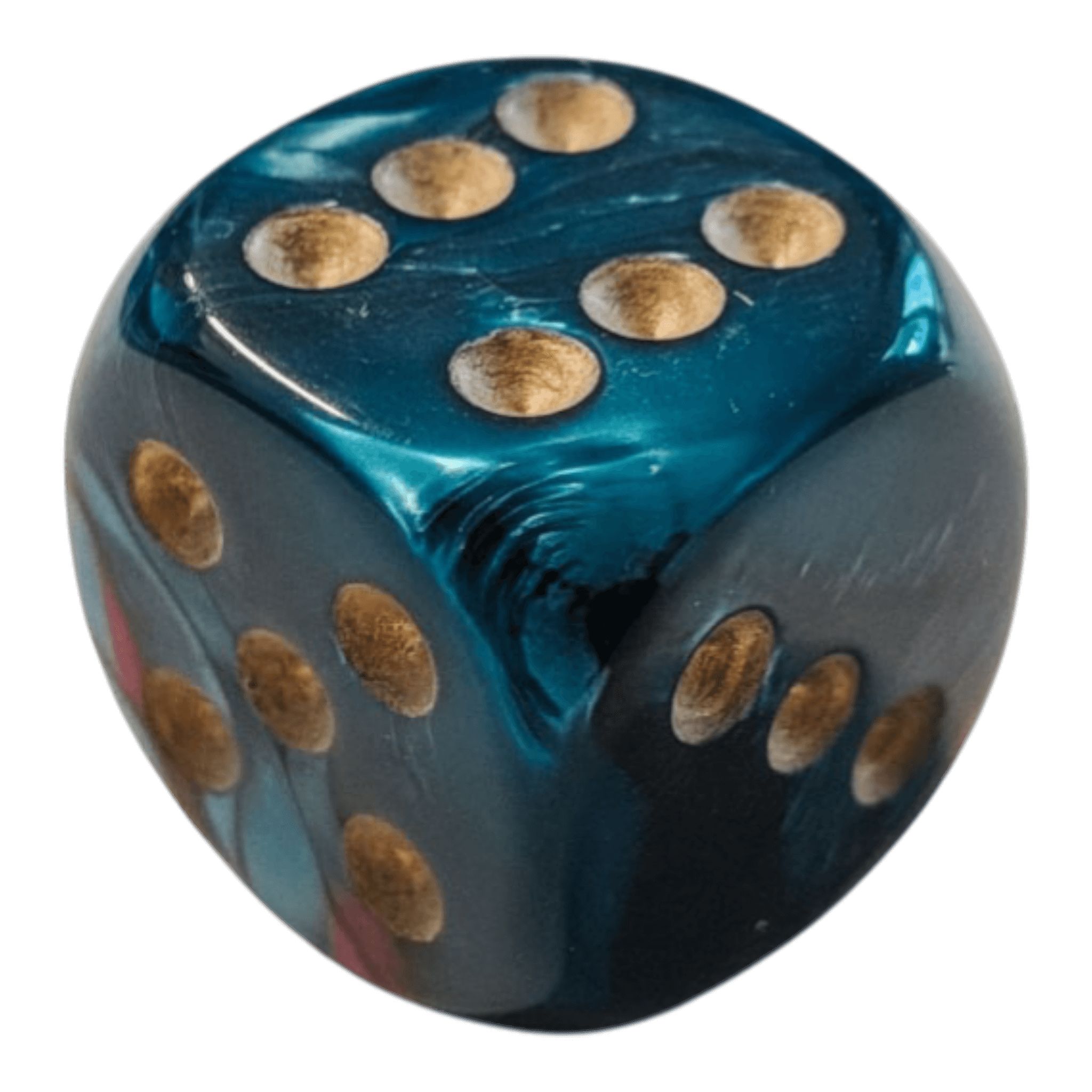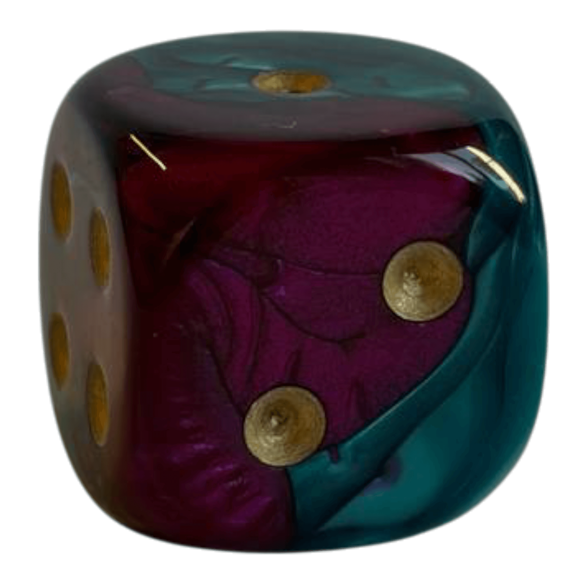 Der Chessex Gemini Purple-Teal W6 verbindet zwei schimmernde Farbtöne zu einem markanten Würfeldesign. Das typische Gemini-Finish vereint Violett (Purple) und Türkis (Teal) in einem fließenden Farbverlauf, der bei jedem Würfel einzigartig ausfällt. Dadurch wirkt jeder Wurf dynamisch und lebendig.