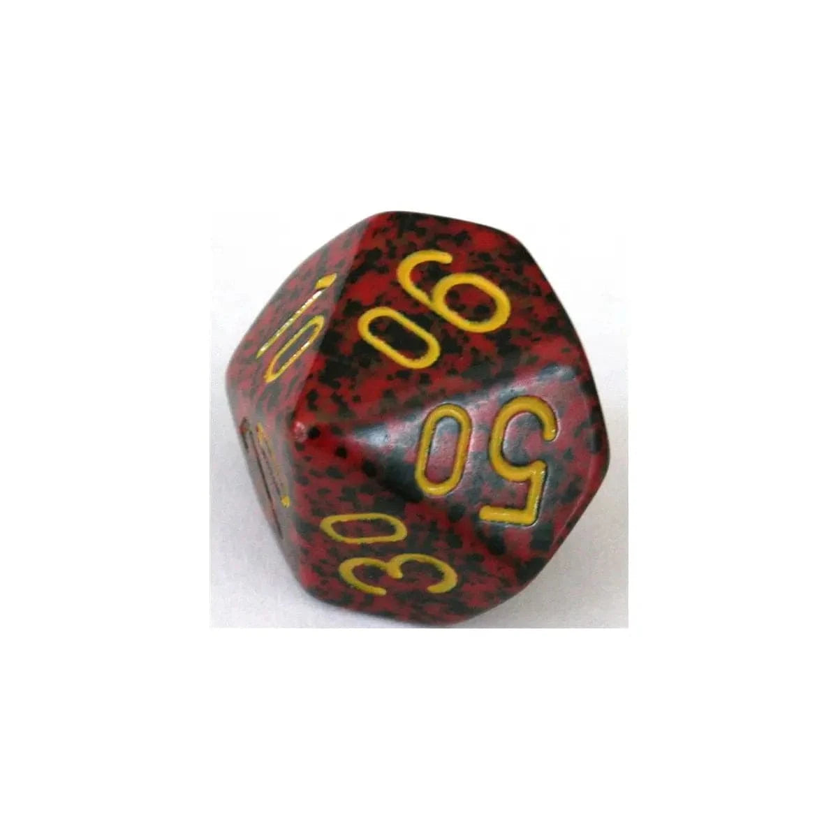 Der W10-0 Chessex Speckled Mercury Würfel beeindruckt durch seine lebendige Optik und hohe Funktionalität. Die rote Basis wird von feinen schwarzen Sprenkeln durchzogen, die dem Würfel eine auffällige, dynamische Optik verleihen. Die leuchtend gelben Nummern bieten einen klaren Kontrast zur gesprenkelten Oberfläche, was eine hervorragende Lesbarkeit ermöglicht. Dieser Chessex Würfel ist nicht nur ein Blickfang, sondern auch ein präziser und zuverlässiger Begleiter bei jeder Spielrunde.