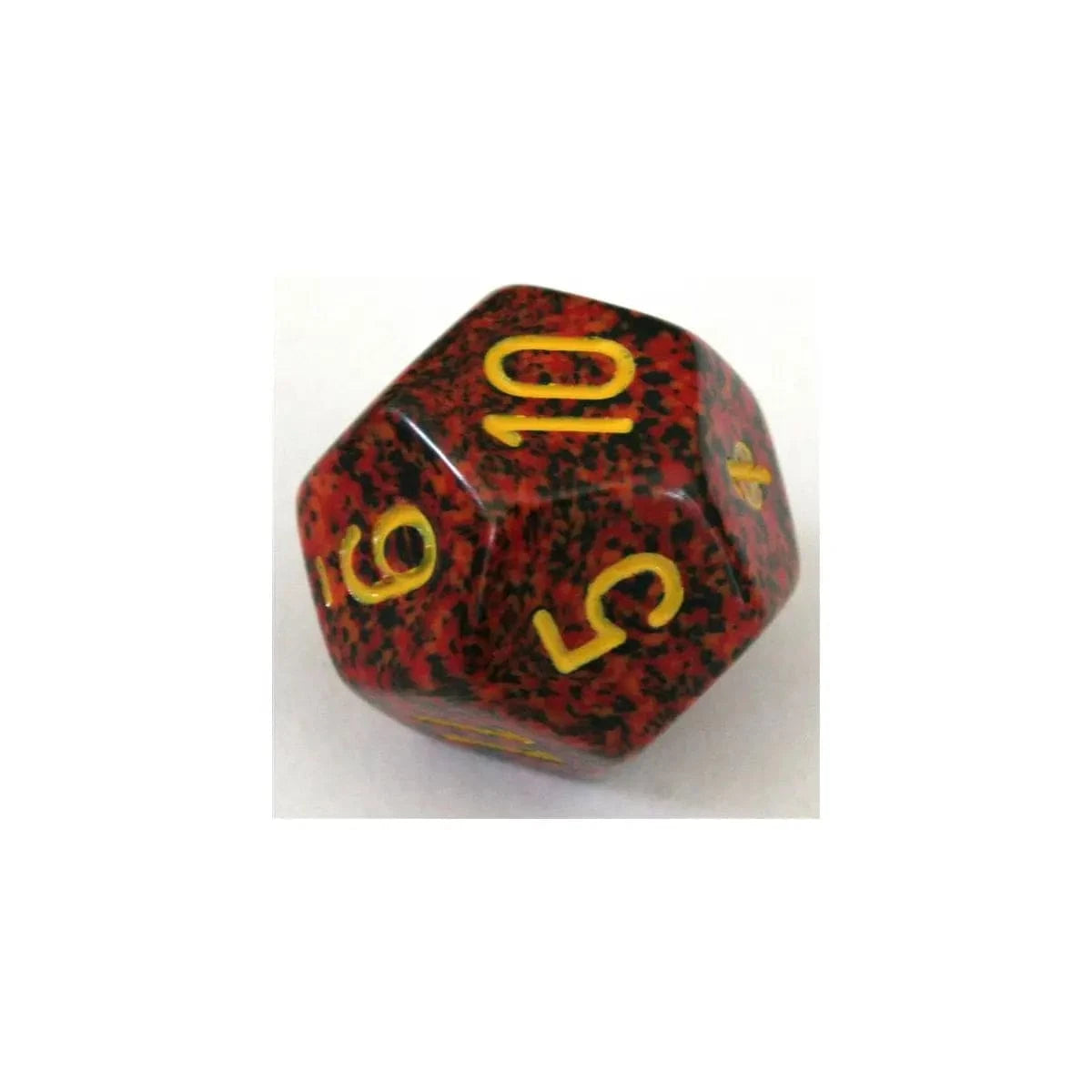 Der W12 Chessex Speckled Mercury Würfel besticht durch sein markantes Design und hohe Funktionalität. Die rote Würfelbasis ist mit feinen schwarzen Sprenkeln verziert, was für eine dynamische und ansprechende Optik sorgt. Die leuchtend gelben Nummern heben sich deutlich von der gesprenkelten Oberfläche ab und garantieren eine klare Lesbarkeit. Dieser Chessex Würfel ist sowohl optisch ansprechend als auch ein zuverlässiges Werkzeug für jedes Spiel.
