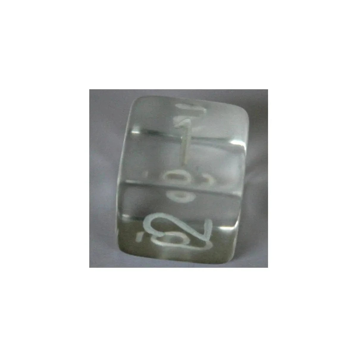 Der sechsseitige Chessex Translucent Clear beeindruckt durch seine völlige Transparenz, wobei die klaren weißen Zahlen für eine einfache Ablesbarkeit sorgen.