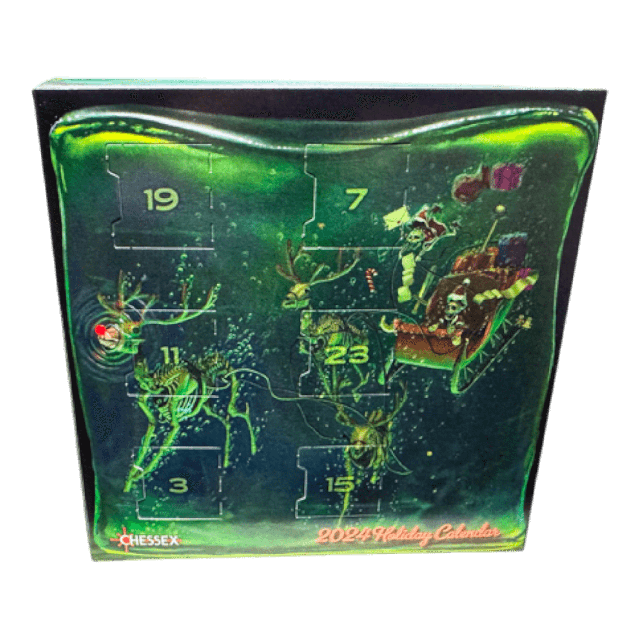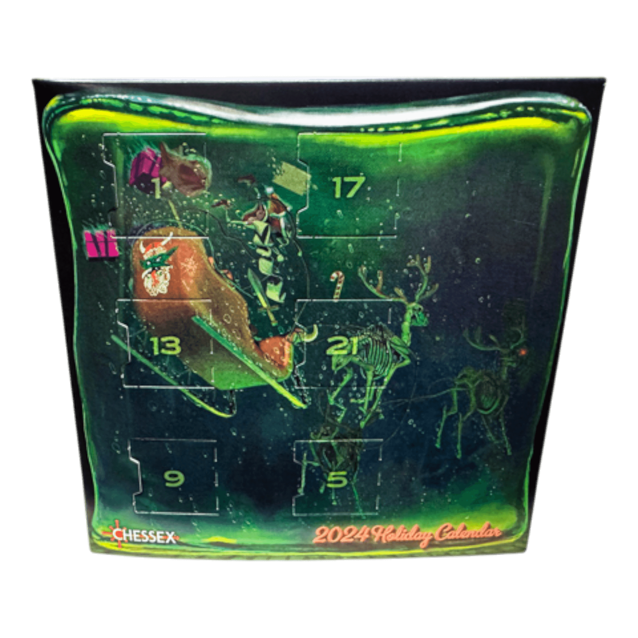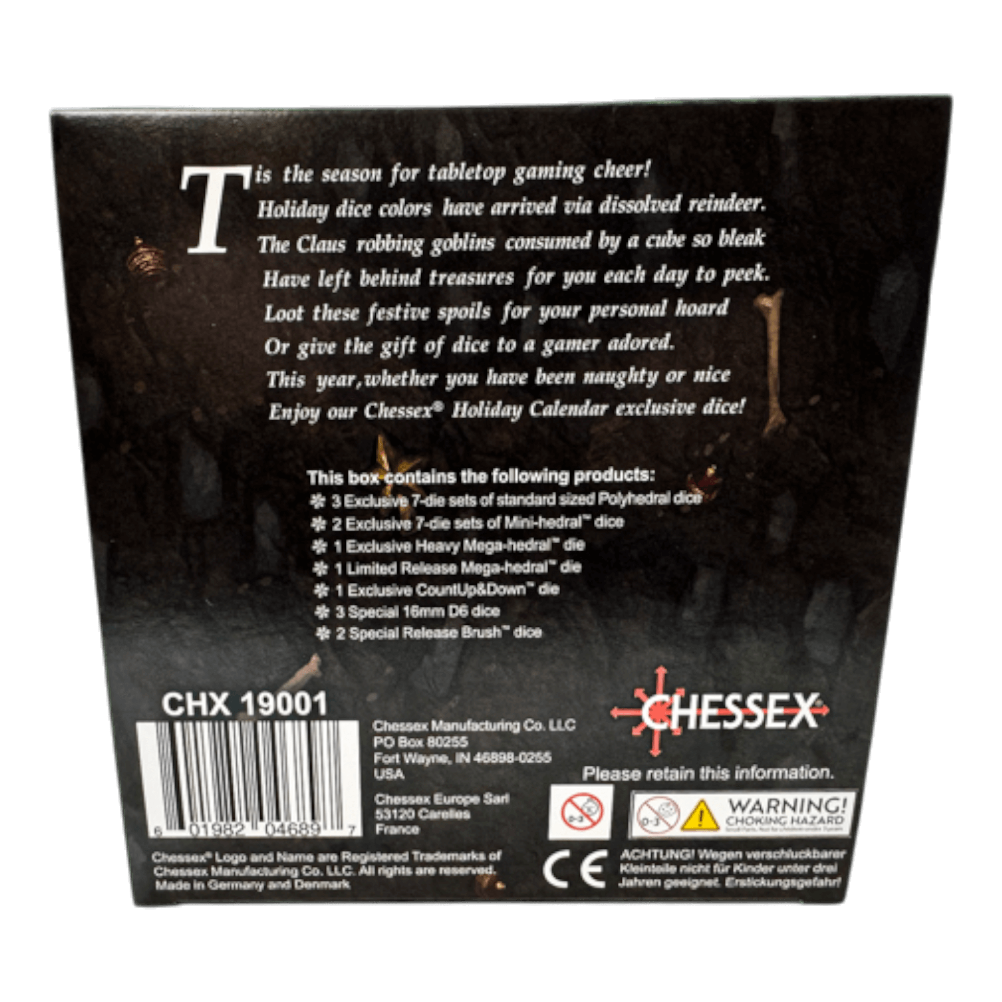 Der Chessex Würfelkalender hat 25 Türchen für die Weihnachtszeit.