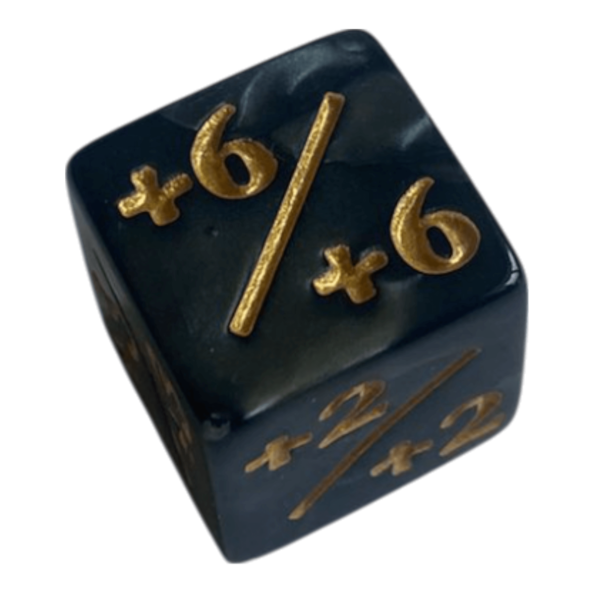 Dieser stilvolle Counter Würfel in Perlmutt Schwarz mit edlen goldenen Zahlen eignet sich ideal für Magic: The Gathering (MTG) und ähnliche Kartenspiele. Mit einer Skala im positiven Bereich lässt sich der Würfel hervorragend nutzen, um Lebenspunkte, +1/+1-Marken oder sonstige steigende Werte direkt am Spielfeld zu markieren.