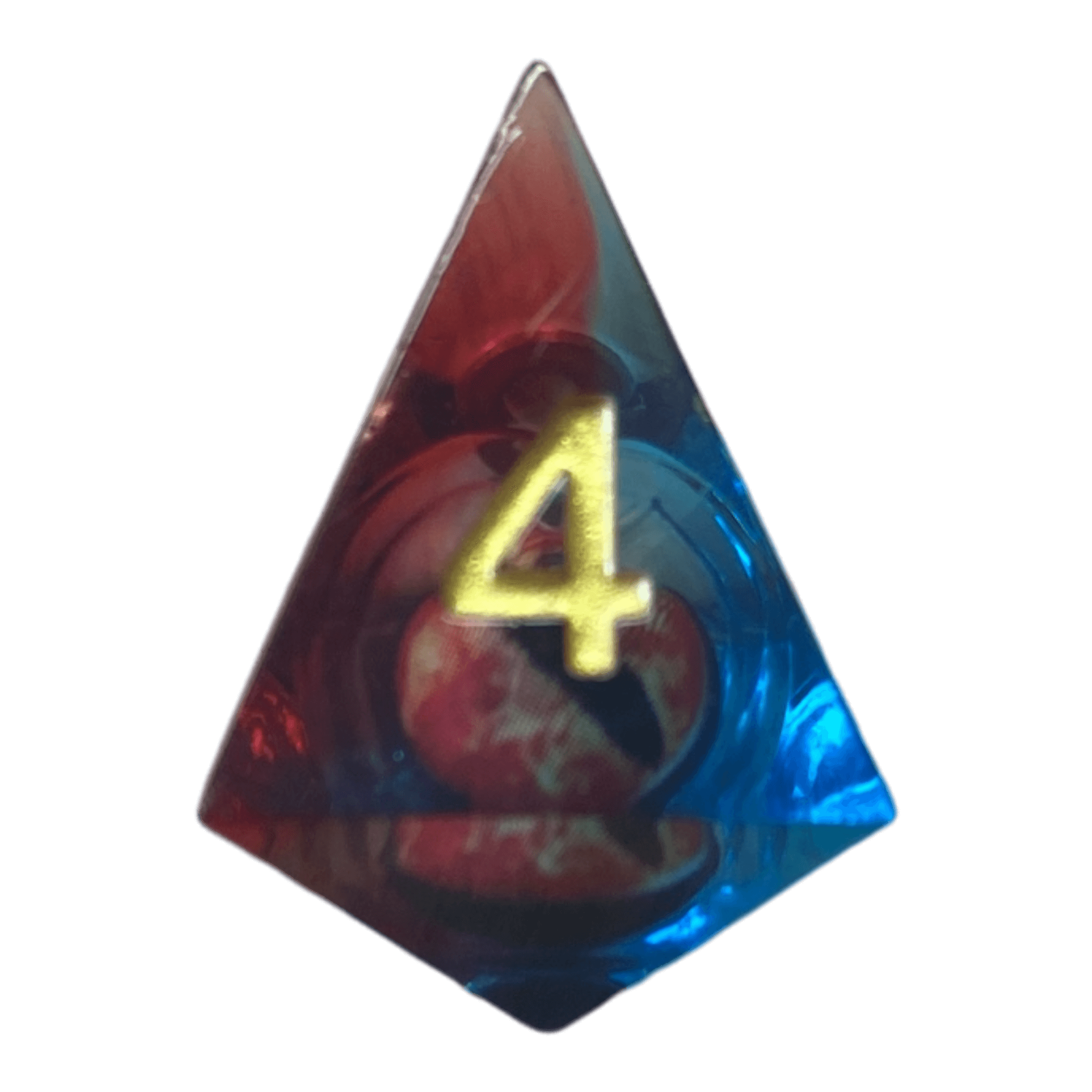 Der blaue W4 Drachenaugen-Würfel fasziniert durch ein dynamisches Design, bei dem das Drachenauge in einer geteilten Flüssigkeit schwebt. Während ein Teil der Flüssigkeit klar ist, bewegt sich die rote Flüssigkeit synchron mit dem Auge, was dem Würfel eine besonders lebendige Optik verleiht. Jeder Wurf bringt das Drachenauge und die Flüssigkeit in Bewegung, wodurch dieser Würfel eine unvergleichliche Tiefe erhält.
