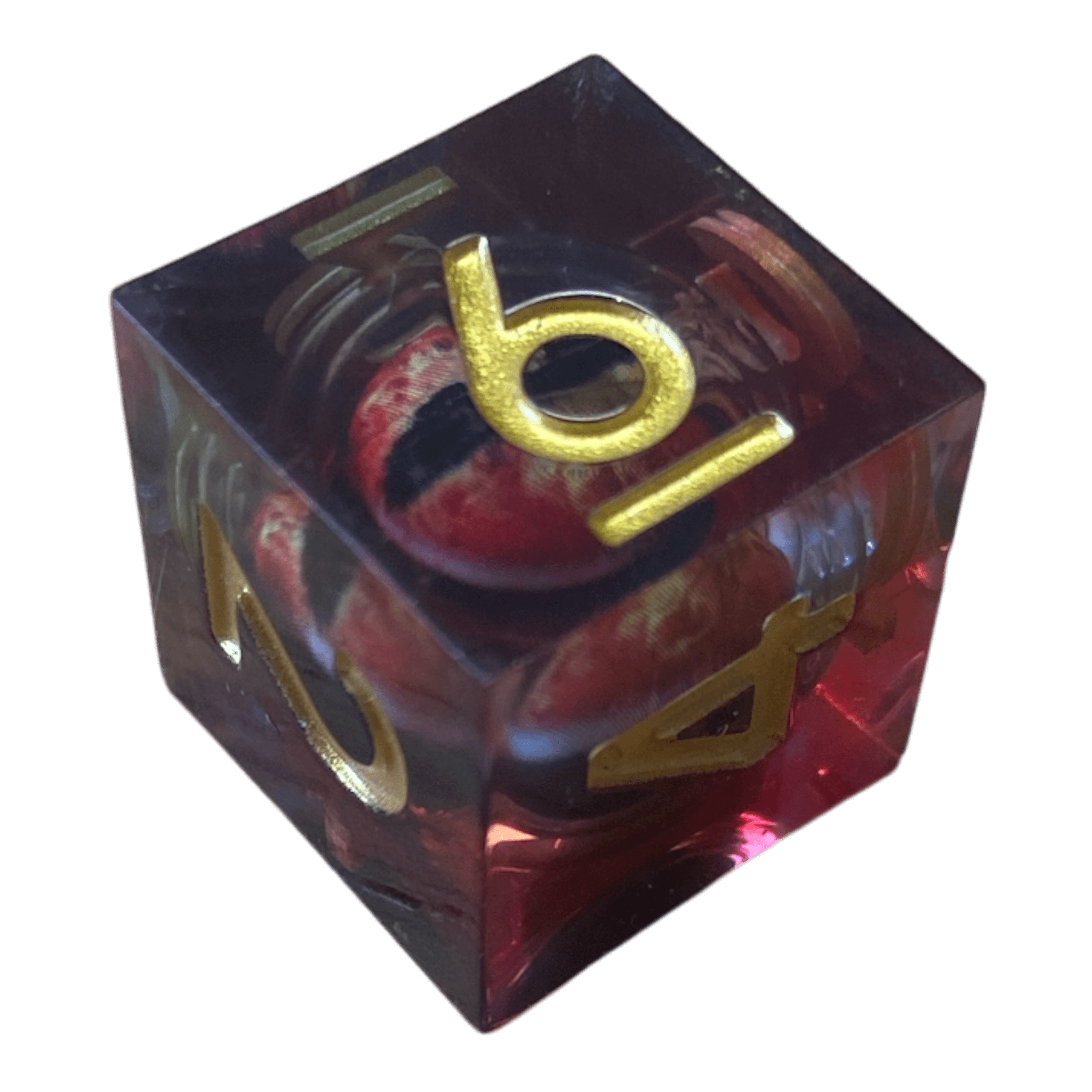 Der blaue W6 Drachenaugen-Würfel beeindruckt durch sein einzigartiges Design, bei dem das Drachenauge in einer faszinierenden, geteilten Flüssigkeit schwebt. Während ein Teil der Flüssigkeit klar ist, bringt der rote Teil der Flüssigkeit eine zusätzliche Dynamik, die sich synchron mit dem Auge bewegt und den Würfel bei jedem Wurf lebendig erscheinen lässt. Dieser besondere Effekt verleiht dem Würfel eine außergewöhnliche Tiefe und Mystik.