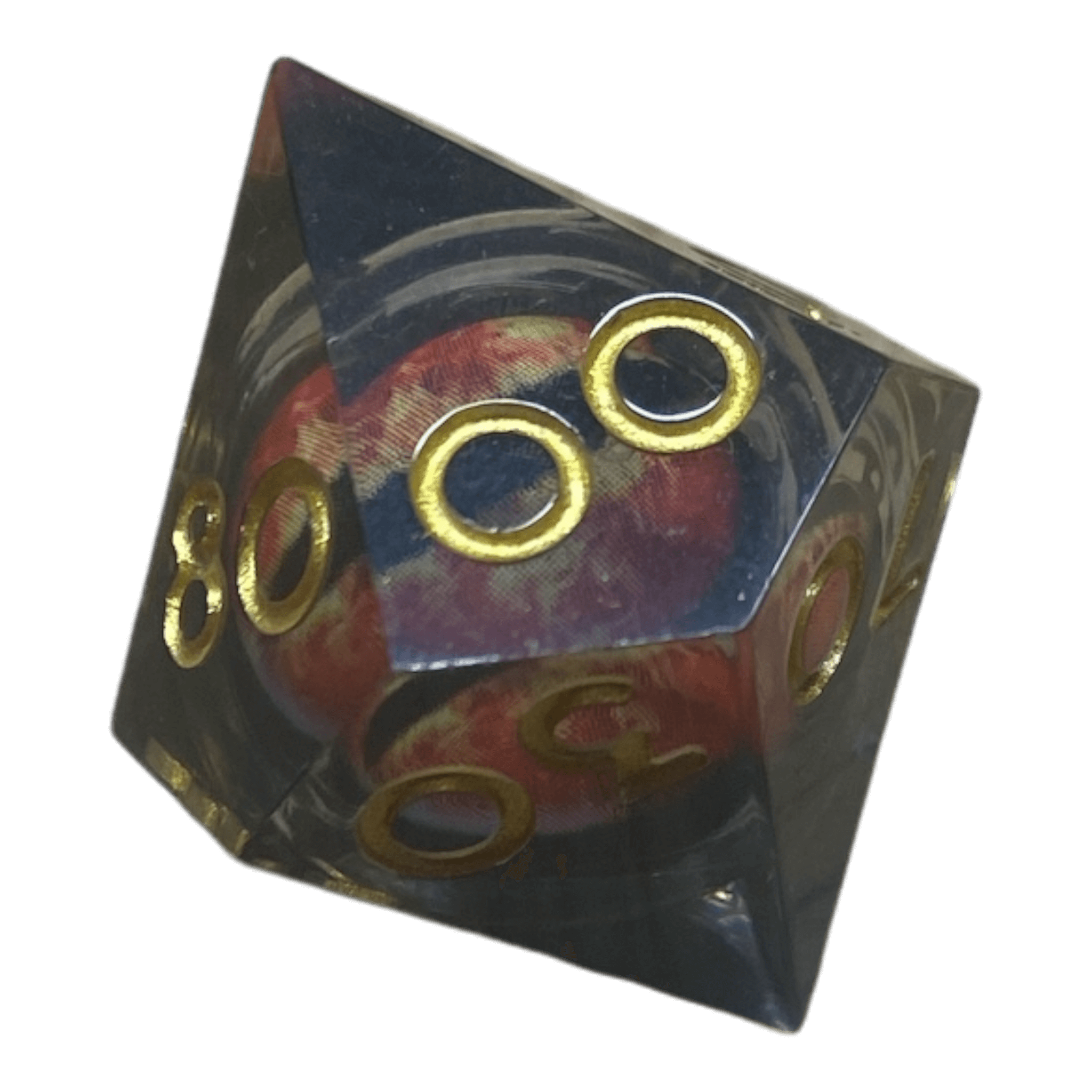 Der W10-0 Drachenaugen-Würfel in Transparent bringt faszinierende Dynamik auf deinen Spieltisch. Im Inneren dieses besonderen Würfels schwebt ein detailreiches Drachenauge, das in einer klaren Flüssigkeit bei jedem Wurf lebendig mitbewegt wird. Die Transparenz des Würfels lässt das Auge noch eindrucksvoller wirken und verleiht ihm eine außergewöhnliche Tiefe.