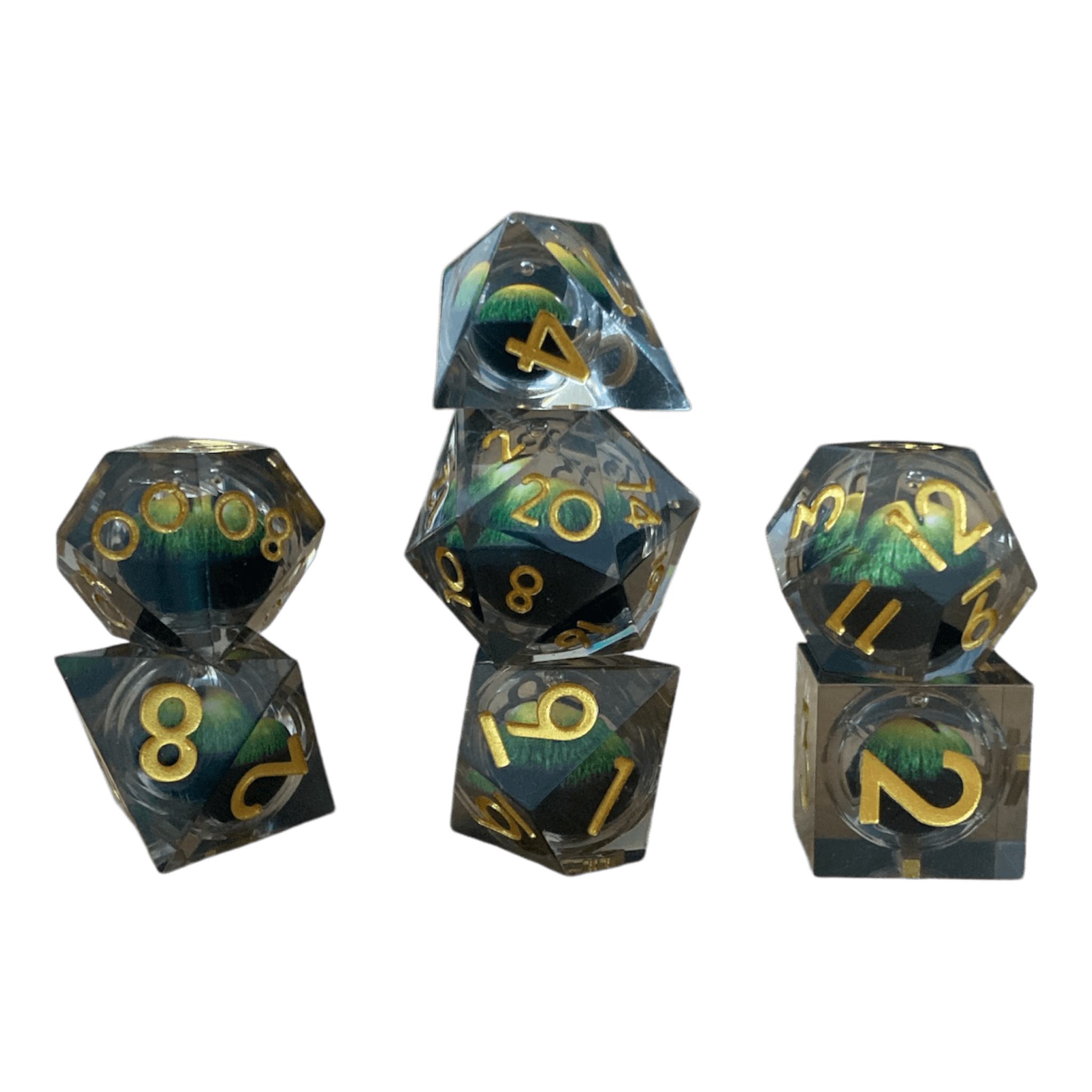 Tauche ein in die Welt der Drachen und Magie mit unserem Drachenaugen-Würfelset. Dieses exklusive Set enthält eine vollständige Auswahl an Würfeln – von W4 bis W20 – mit einem faszinierenden Drachenauge im Inneren, das in einer Flüssigkeit schwebt. Bei jedem Wurf bewegt sich das Auge dynamisch mit und verleiht jedem Spielzug einen Hauch von Mystik und Spannung.