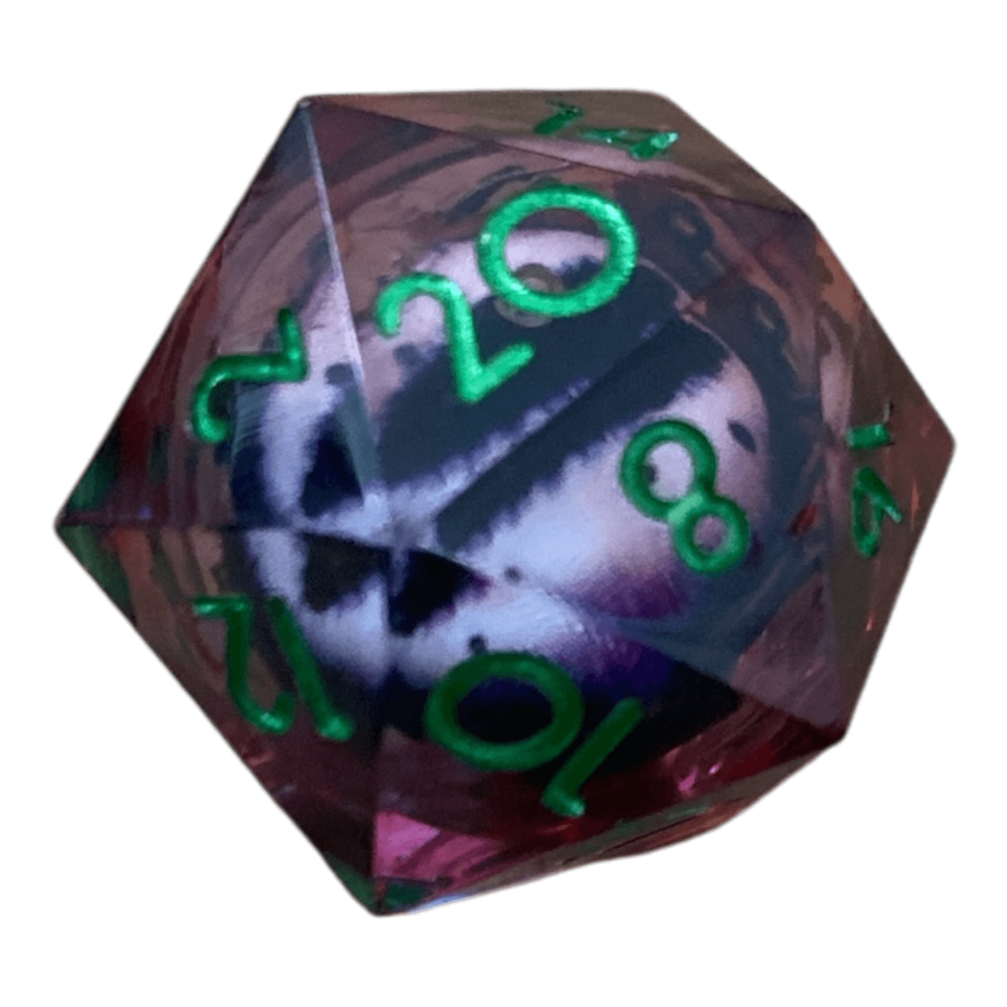 Der lila W20 Drachenaugen-Würfel ist ein atemberaubendes Stück, das durch sein faszinierendes, schwebendes Drachenauge besticht. In einer flüssigen Umgebung bewegt sich das Auge bei jedem Wurf dynamisch mit und verleiht deinem Spiel eine magische Tiefe. Die kräftige lila Farbgebung verstärkt die mystische Atmosphäre und macht diesen Würfel zu einem wahren Blickfang.