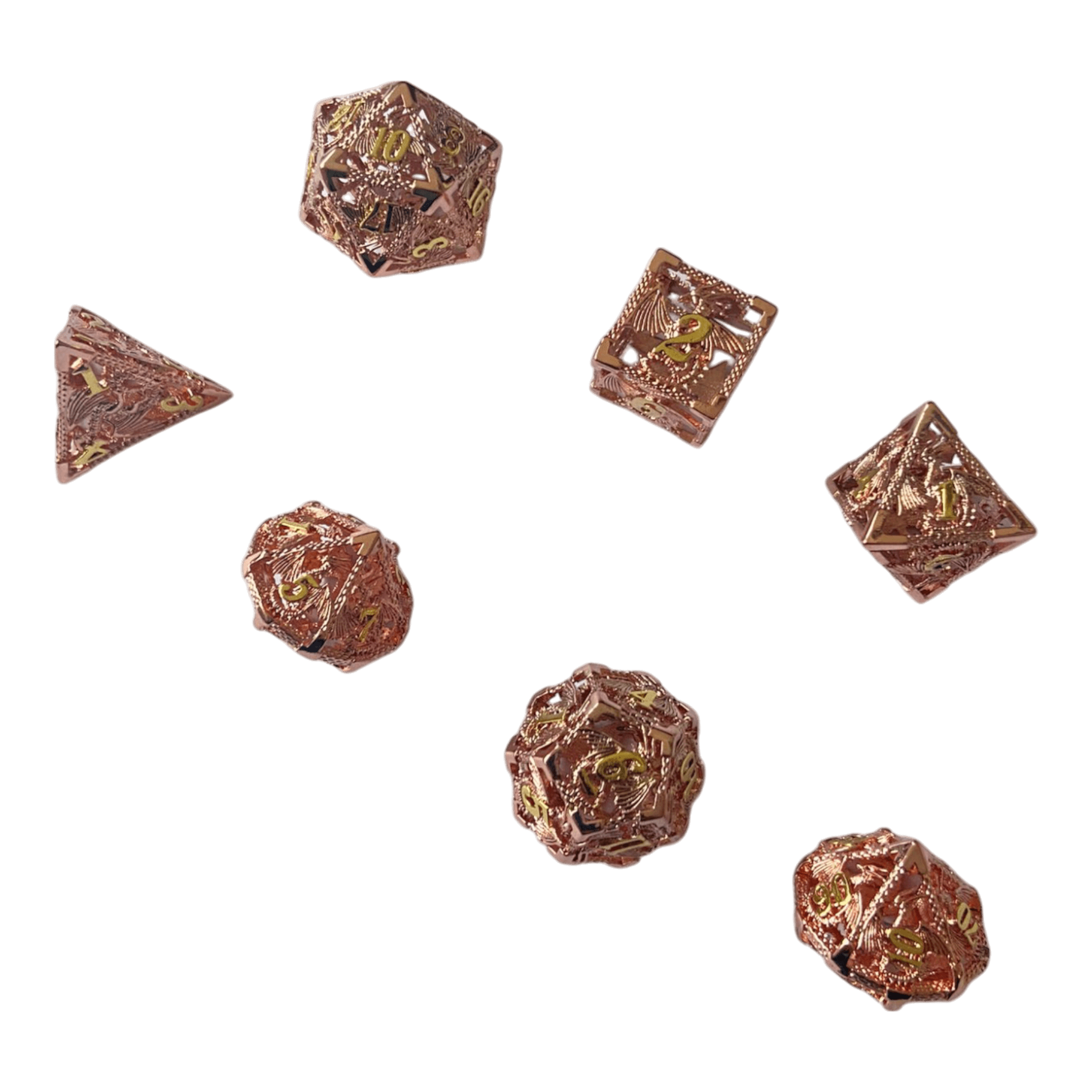 Drachenwürfel-Set (Kupfer mit goldenen Nummern) – 18mm