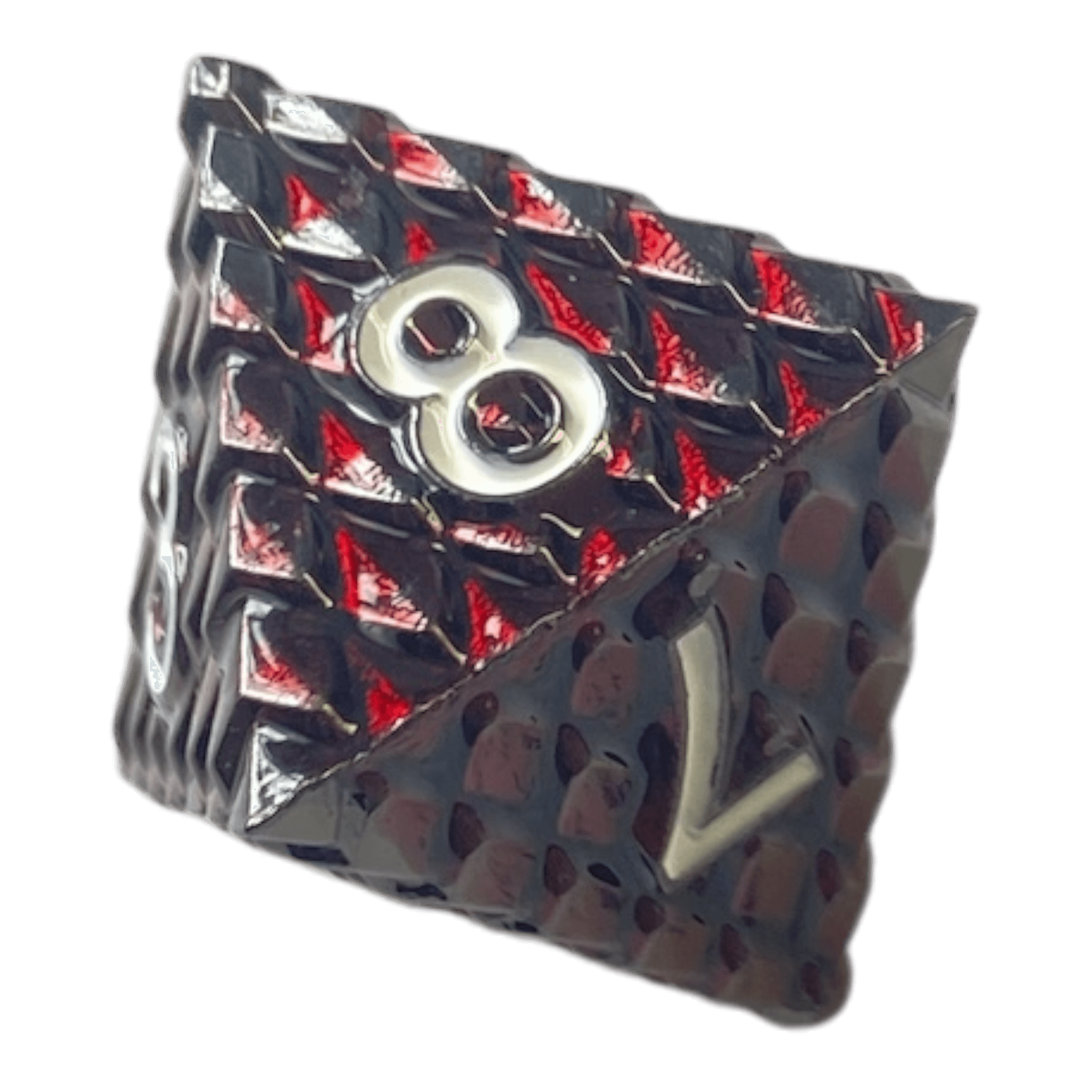 W8 Dragon Scale Drachenwürfel in Dunkelrot – Schimmernde Dunkelrot-Schuppen mit robuster Metallverarbeitung
