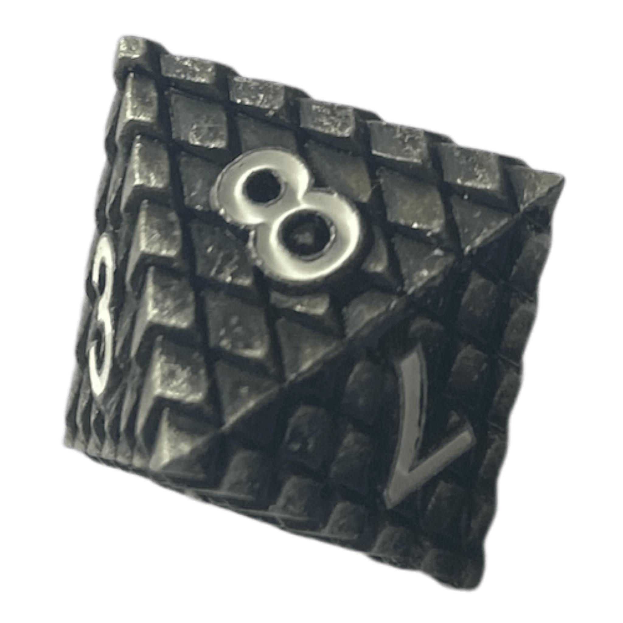 Der W8 Dragon Scale Würfel in Silber vereint die beeindruckende Optik von Drachen-Schuppen mit hochwertiger Metallverarbeitung. Die Schuppen im rustikalen Gunmetal-Look verleihen dem Würfel eine markante, kraftvolle Ausstrahlung, die Stärke und Eleganz perfekt kombiniert. Die robuste Metallverarbeitung sorgt nicht nur für visuelle Faszination, sondern auch für langlebige und präzise Würfelergebnisse.
