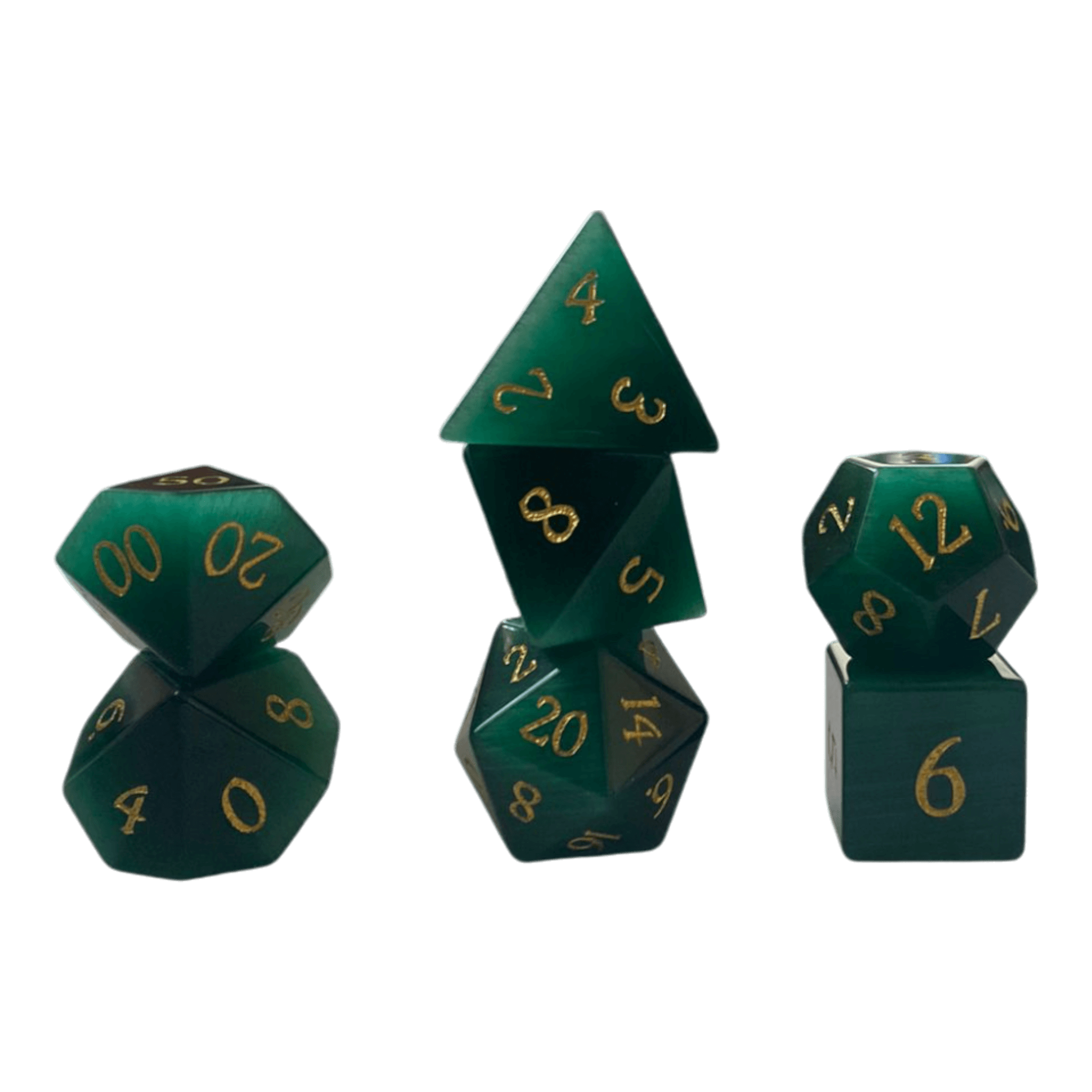 Opalite Glaswürfel-Set in Dunkelgrün – Elegantes Opal-Design mit goldenen Nummern