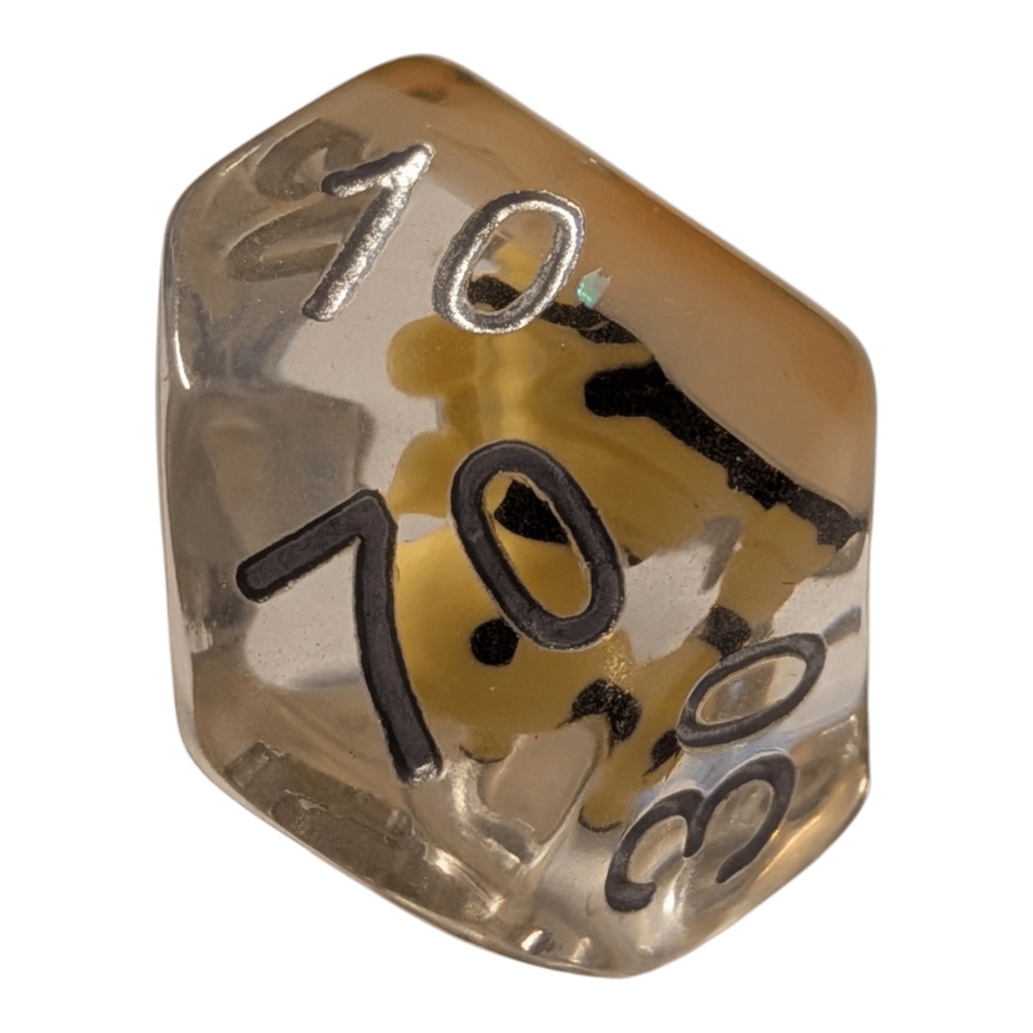 Das Bee Dice 7er Set umfasst alle klassischen Würfel für Pen-&-Paper-Rollenspiele: W4, W6, W8, W10, W00, W12 und W20. Durch das klare, transparente Design kommen die kleinen Bienen besonders gut zur Geltung – ideal für Naturfreunde, Sammler oder Spieler, die ein außergewöhnliches Würfelset suchen.