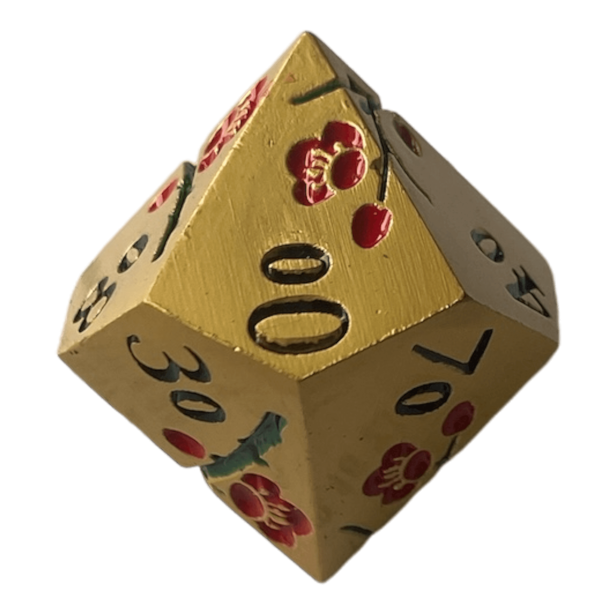 Perfekt für Rollenspiele, Tabletop-Games oder als besonderes Sammlerstück – der W10-0 Blumen Metallwürfel in Gold verbindet kunstvolle Gestaltung mit hoher Funktionalität.