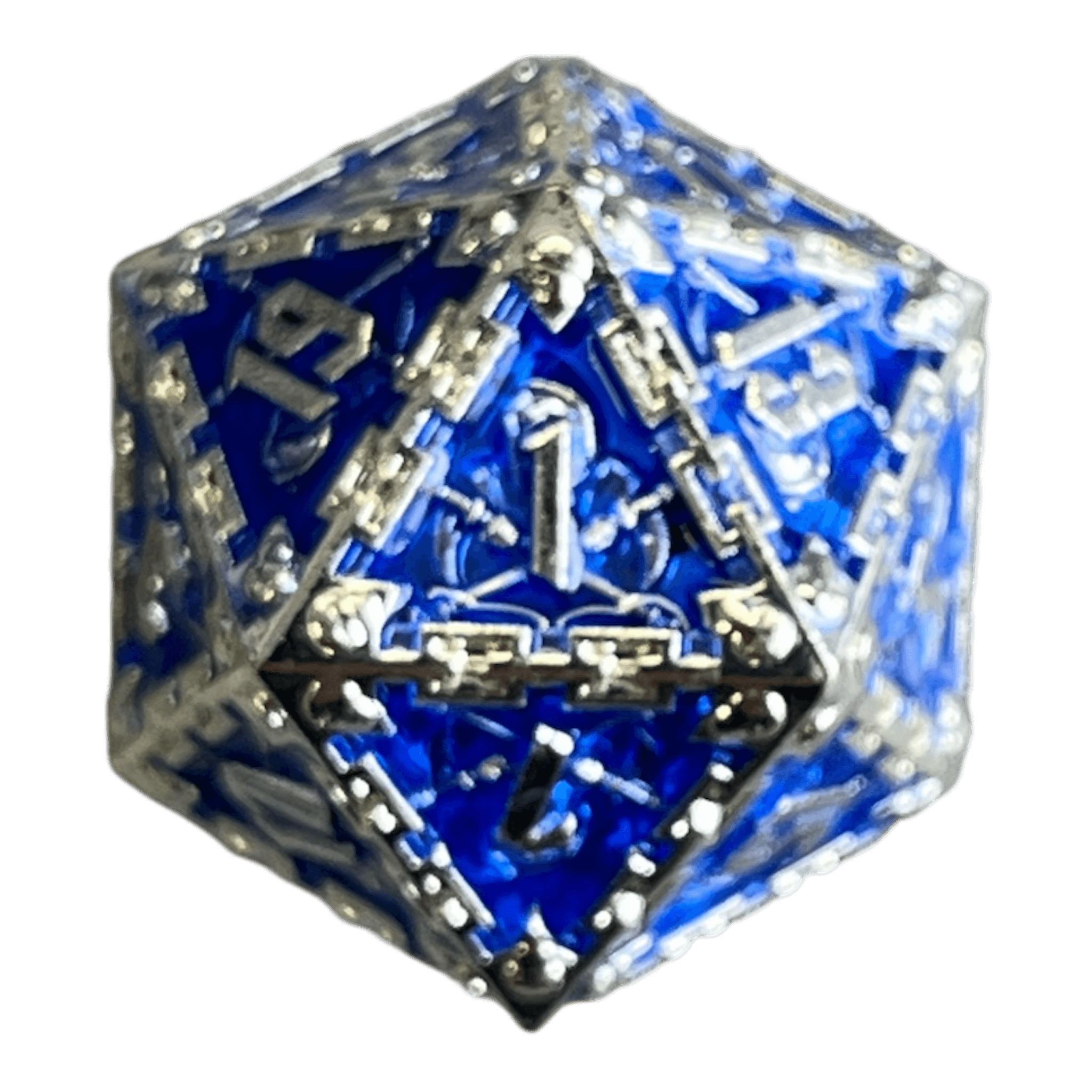 Würfel Stube Grim Reaper Metallwürfel (silber/blau) W20