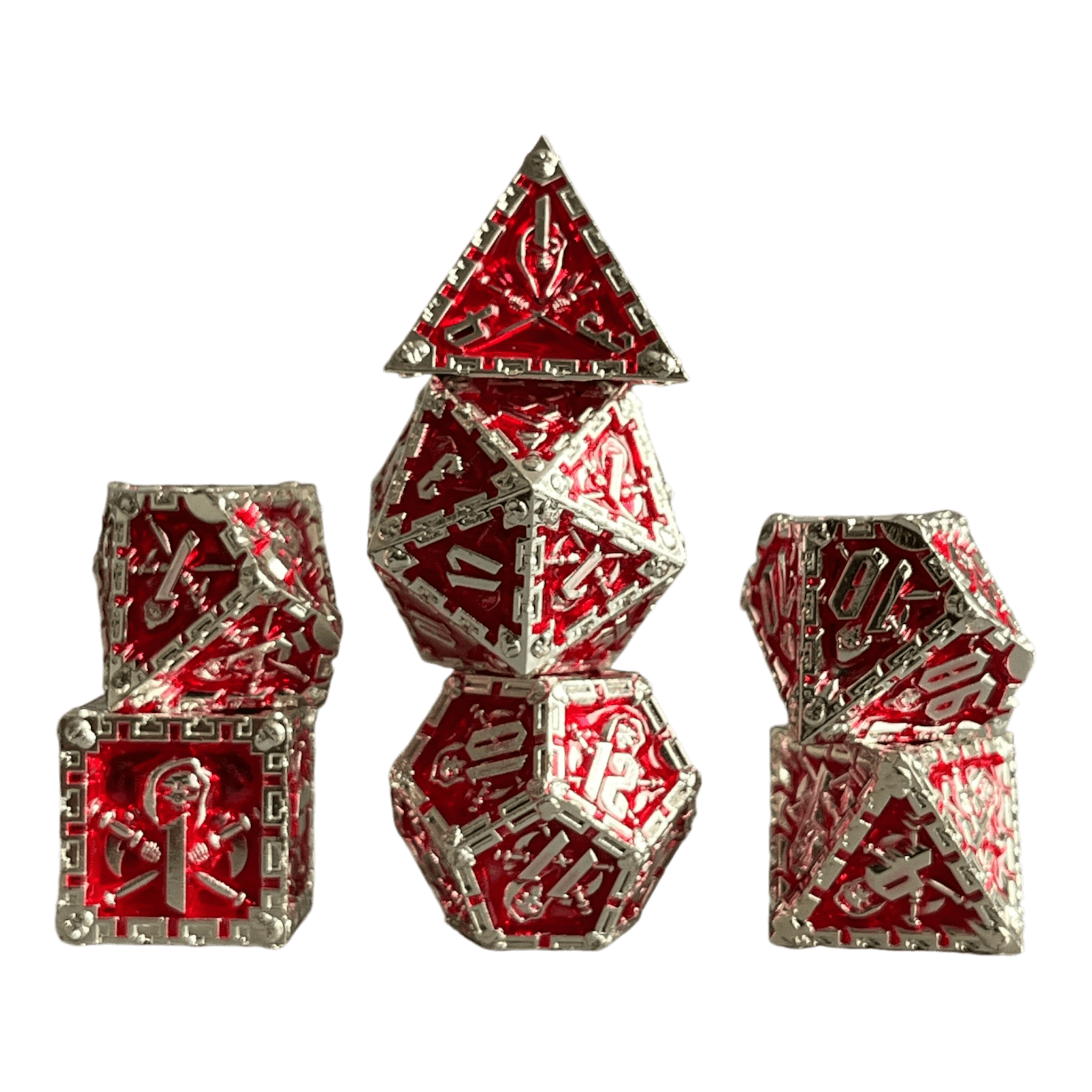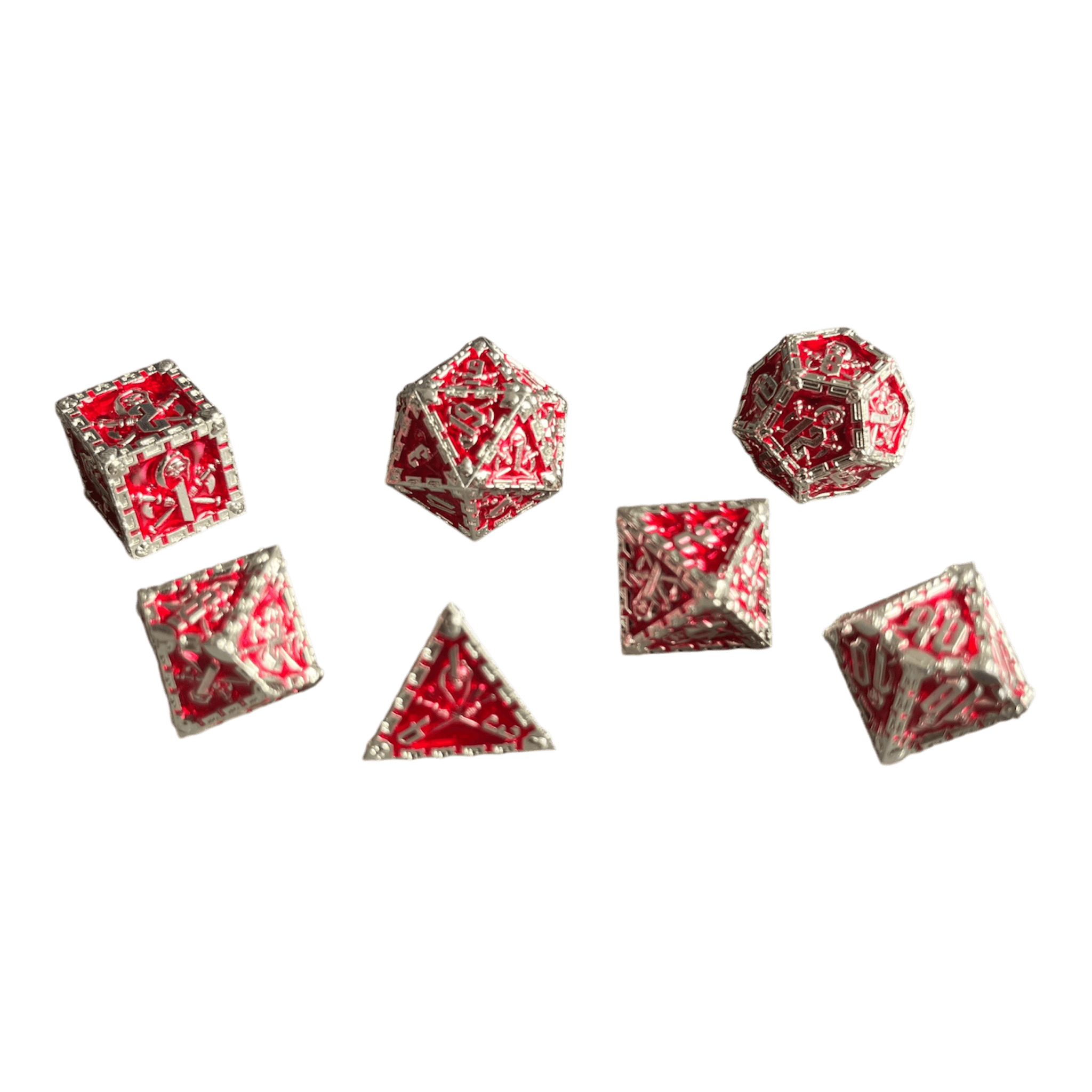 Hinweis: Nutze eine Spielmatte, um Oberflächen vor möglichen Beschädigungen durch das höhere Gewicht und die schärferen Kanten unserer Metall- und Edelsteinwürfel zu schützen.