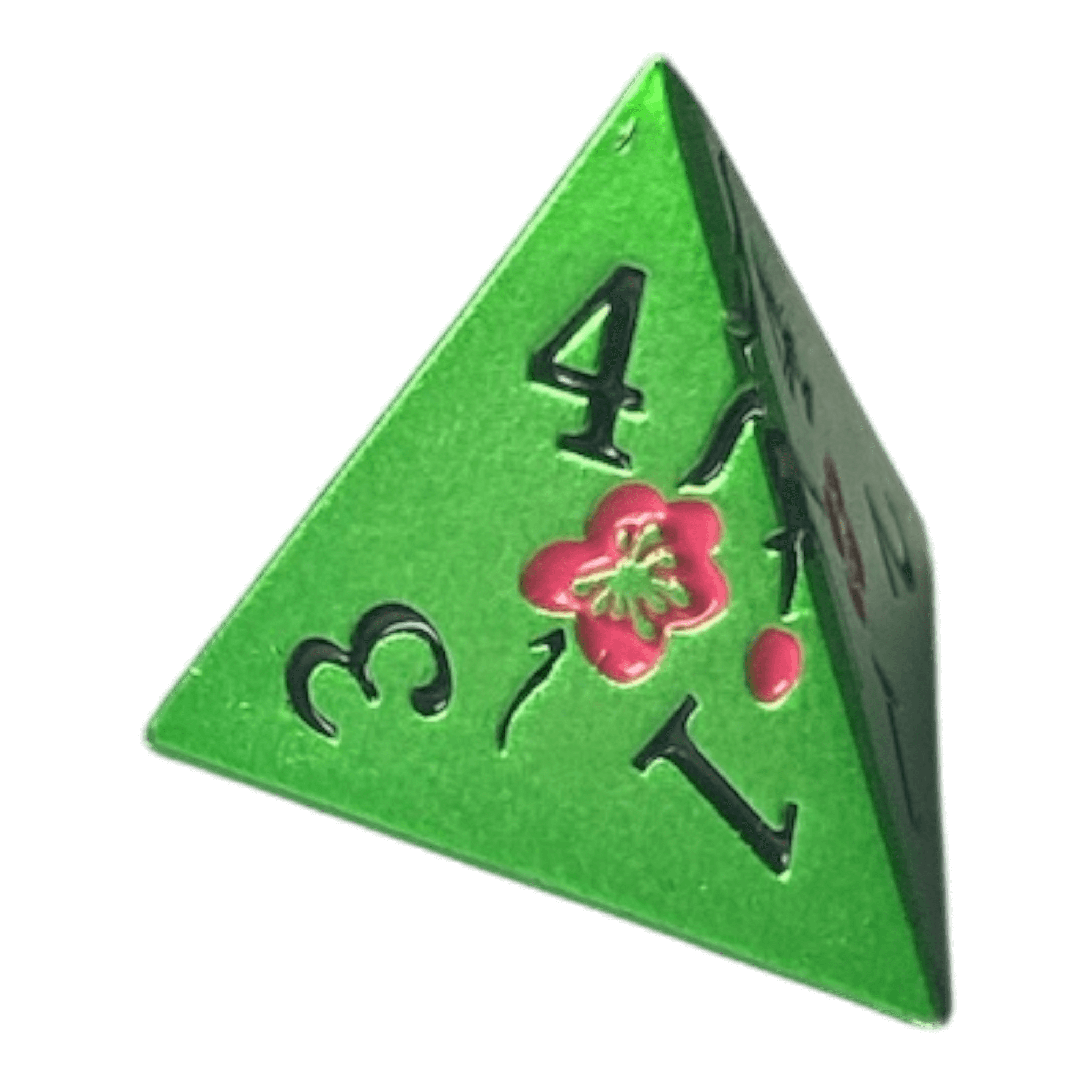 Ideal für Rollenspiele, Tabletop-Games oder als edles Sammlerstück – der W4 Blumen Metallwürfel in Grün kombiniert Eleganz und Funktionalität in perfekter Harmonie.