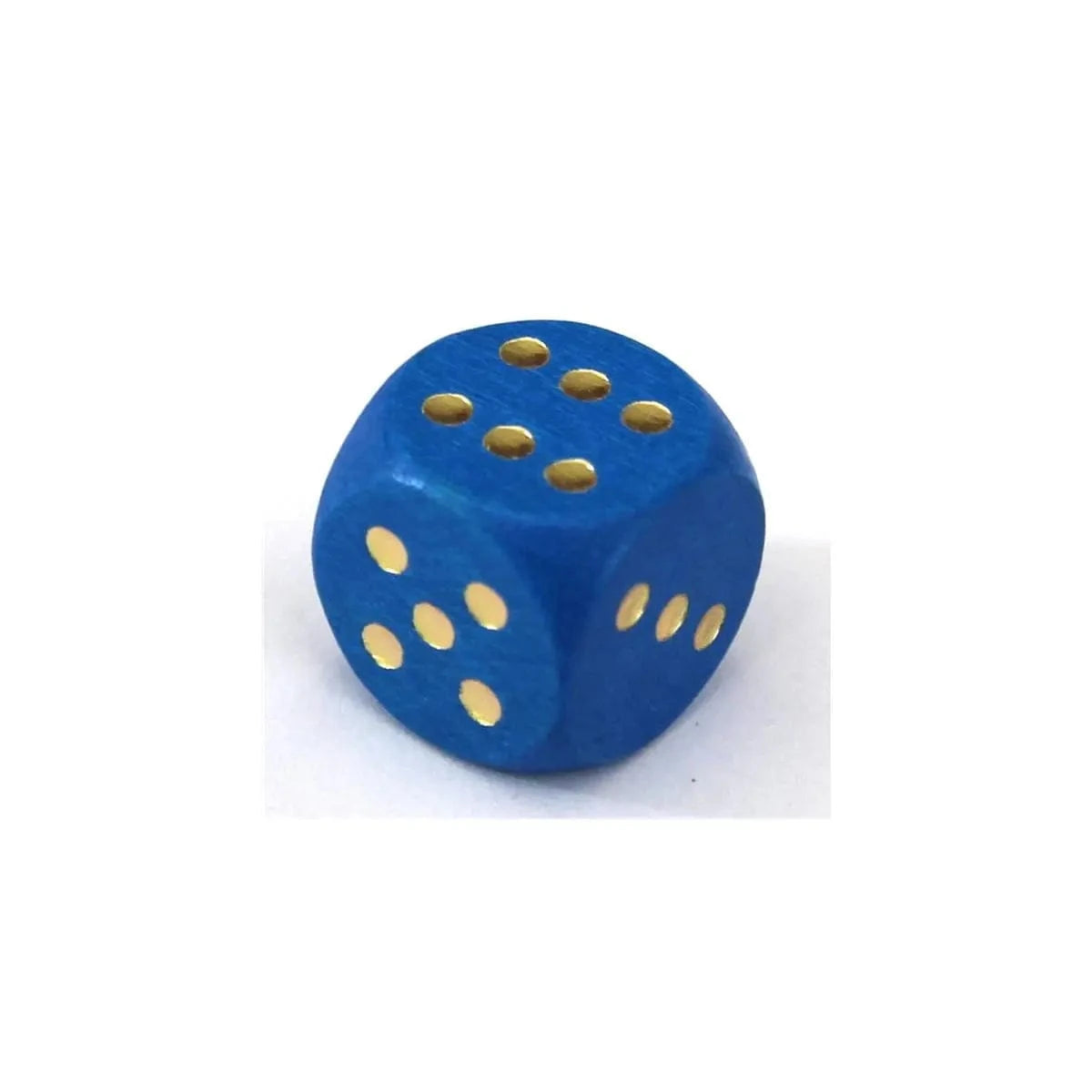 Der 16 mm blaue Holzwürfel hat goldene Punkte und besteht aus langlebigem Holz.