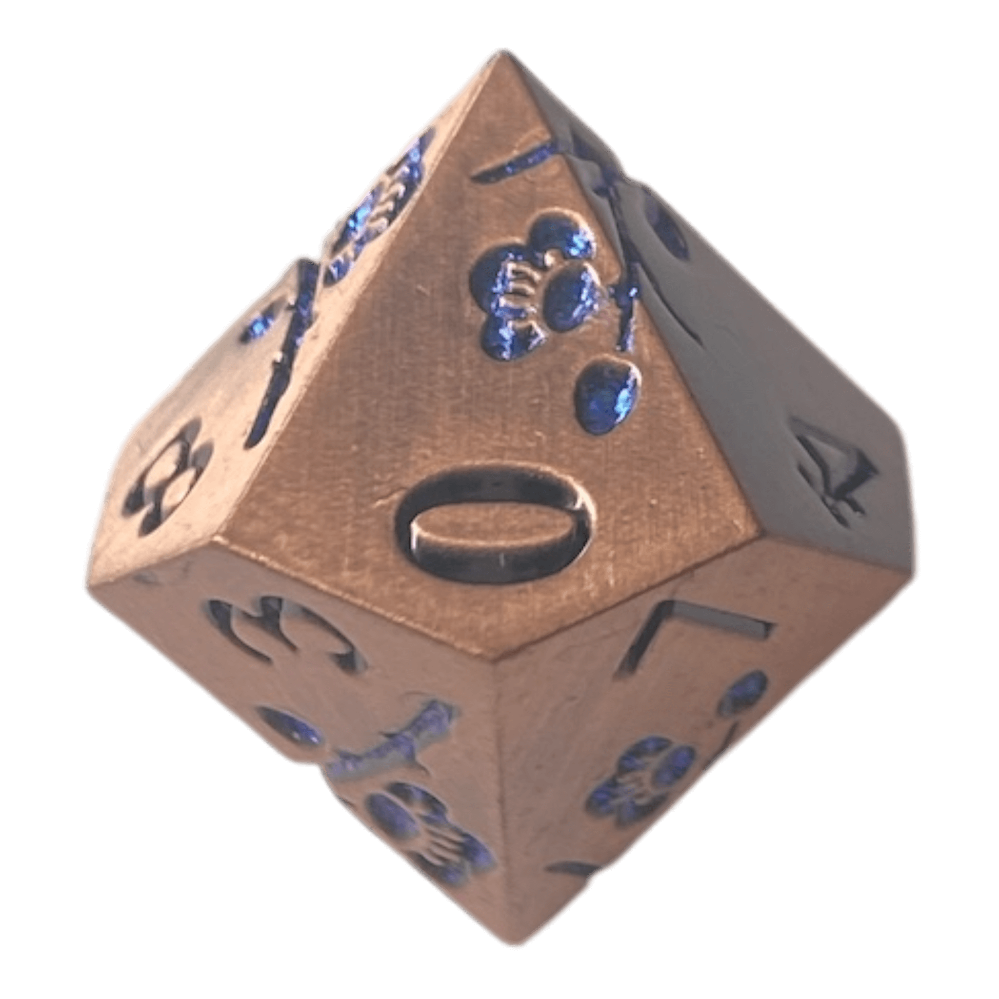 Ideal für Rollenspiele, Tabletop-Games oder als Sammlerstück – der W10 Blumen Metallwürfel in Kupfer bringt stilvolle Eleganz und höchste Funktionalität an deinen Spieltisch.