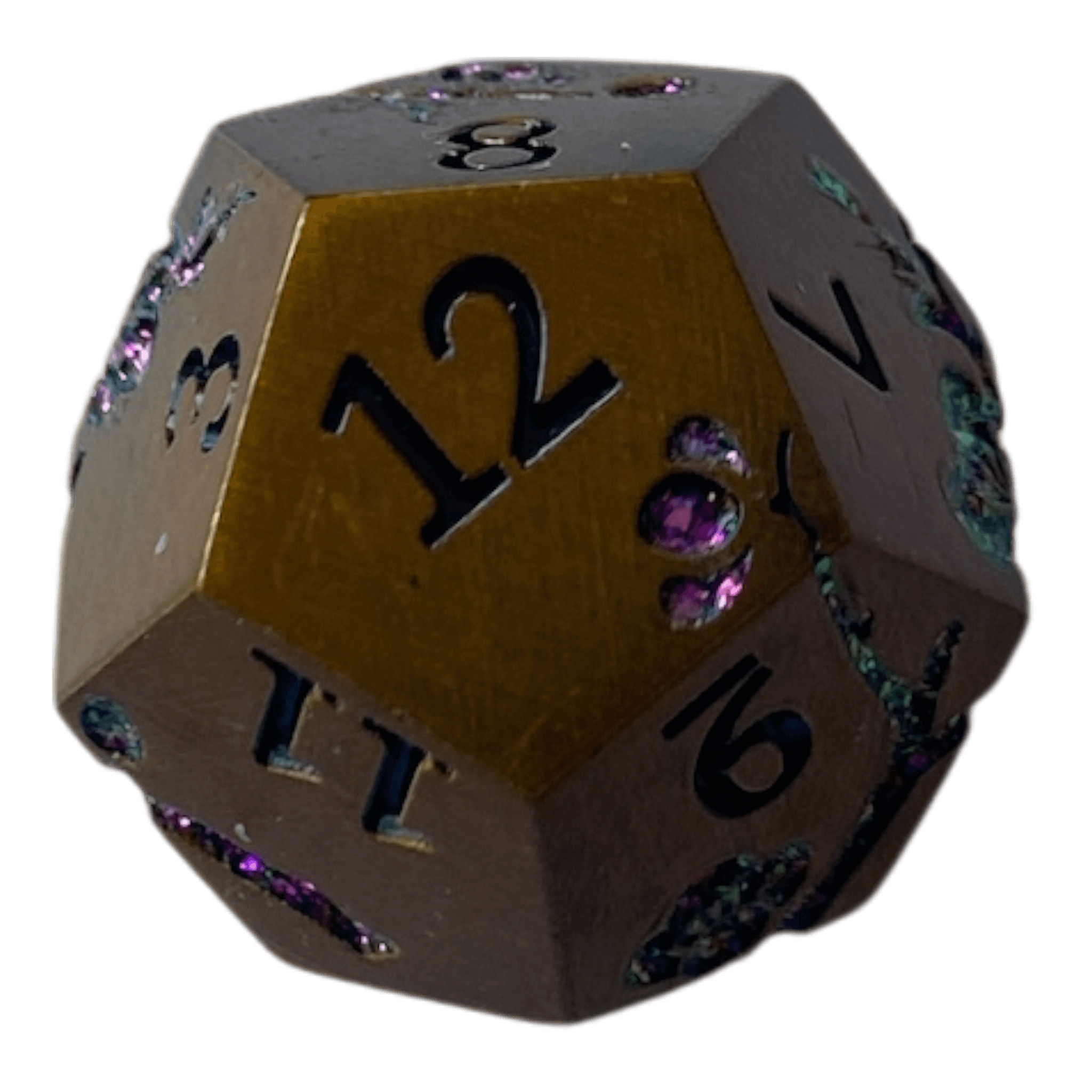 Perfekt für Rollenspiele, Tabletop-Games oder als exklusives Sammlerstück – der W12 Blumen Metallwürfel in Kupfer vereint Eleganz und Präzision in einem außergewöhnlichen Design.