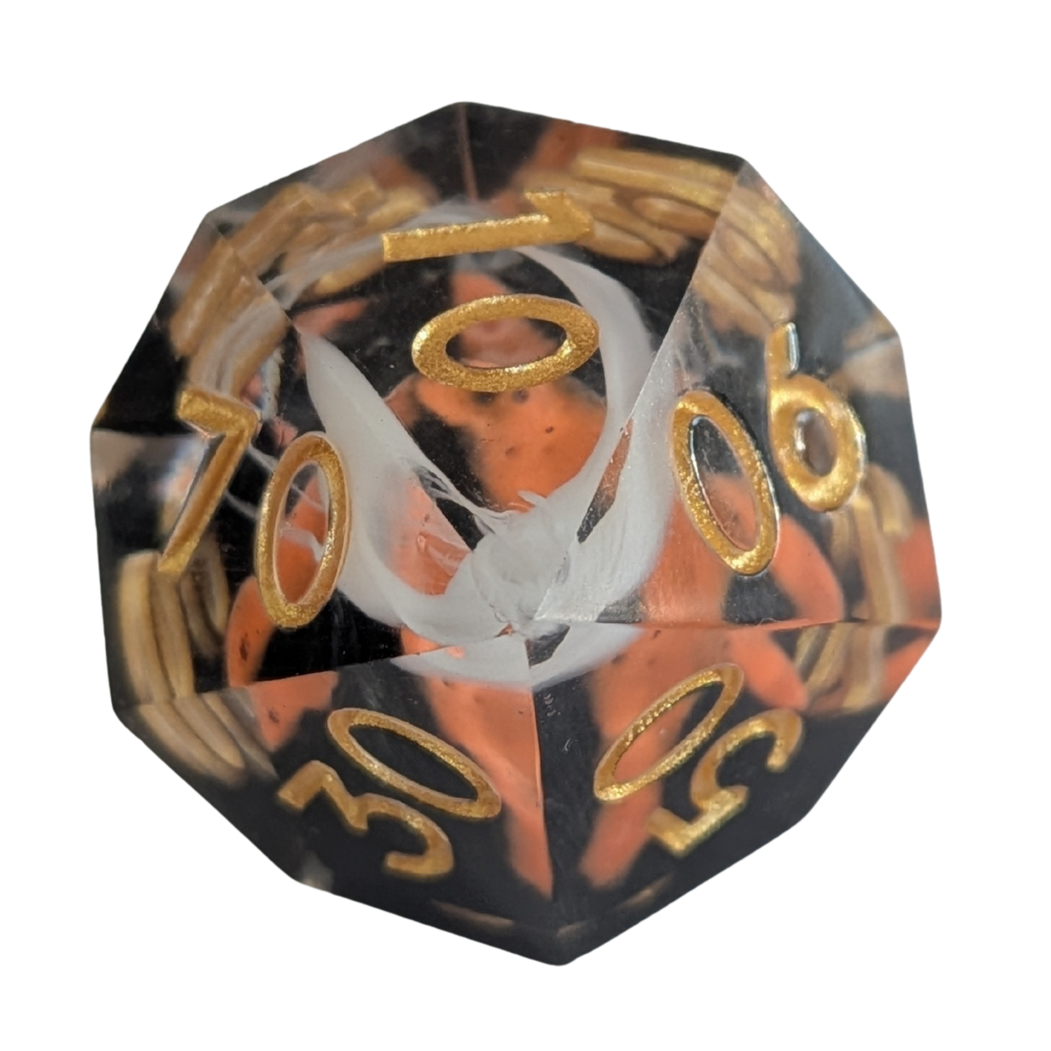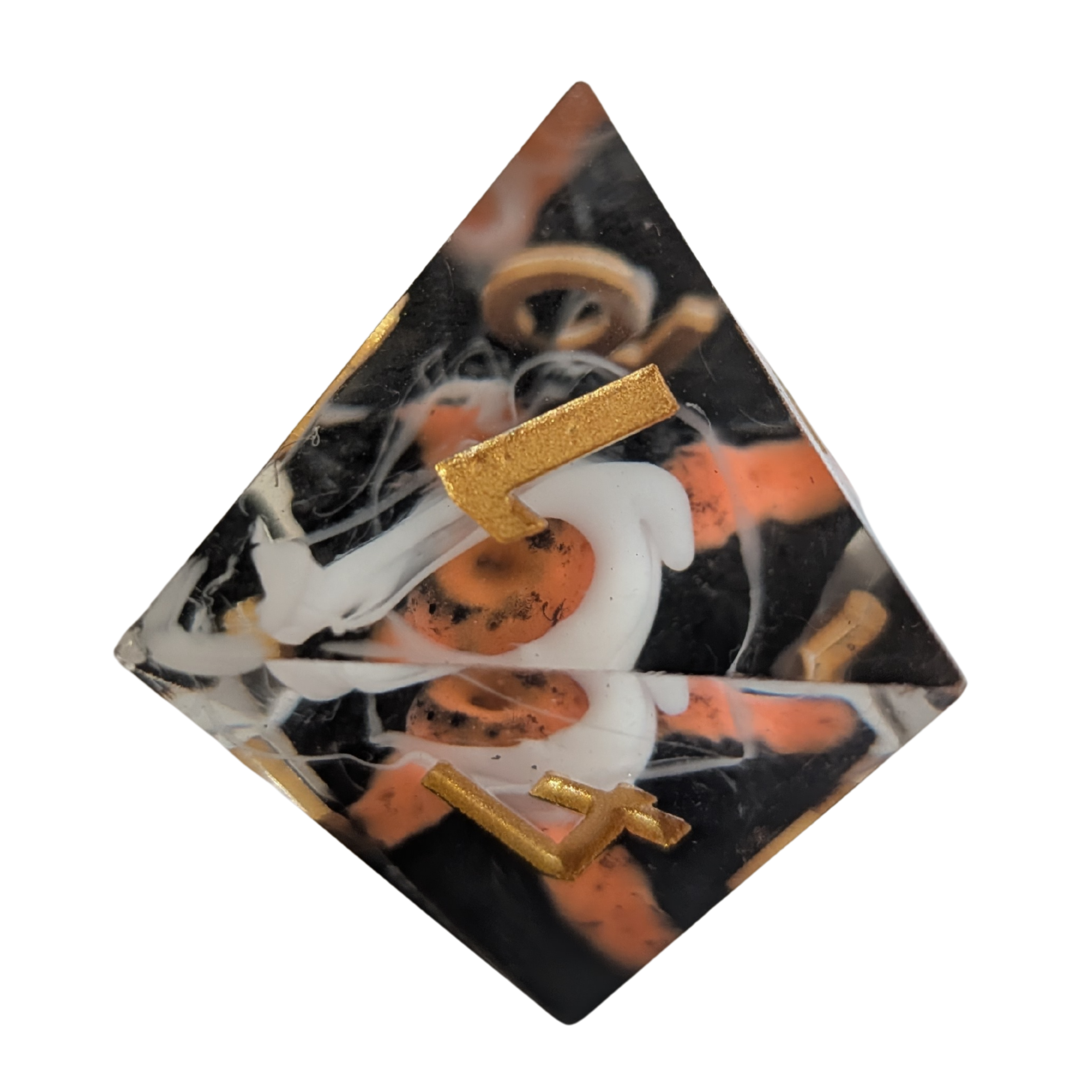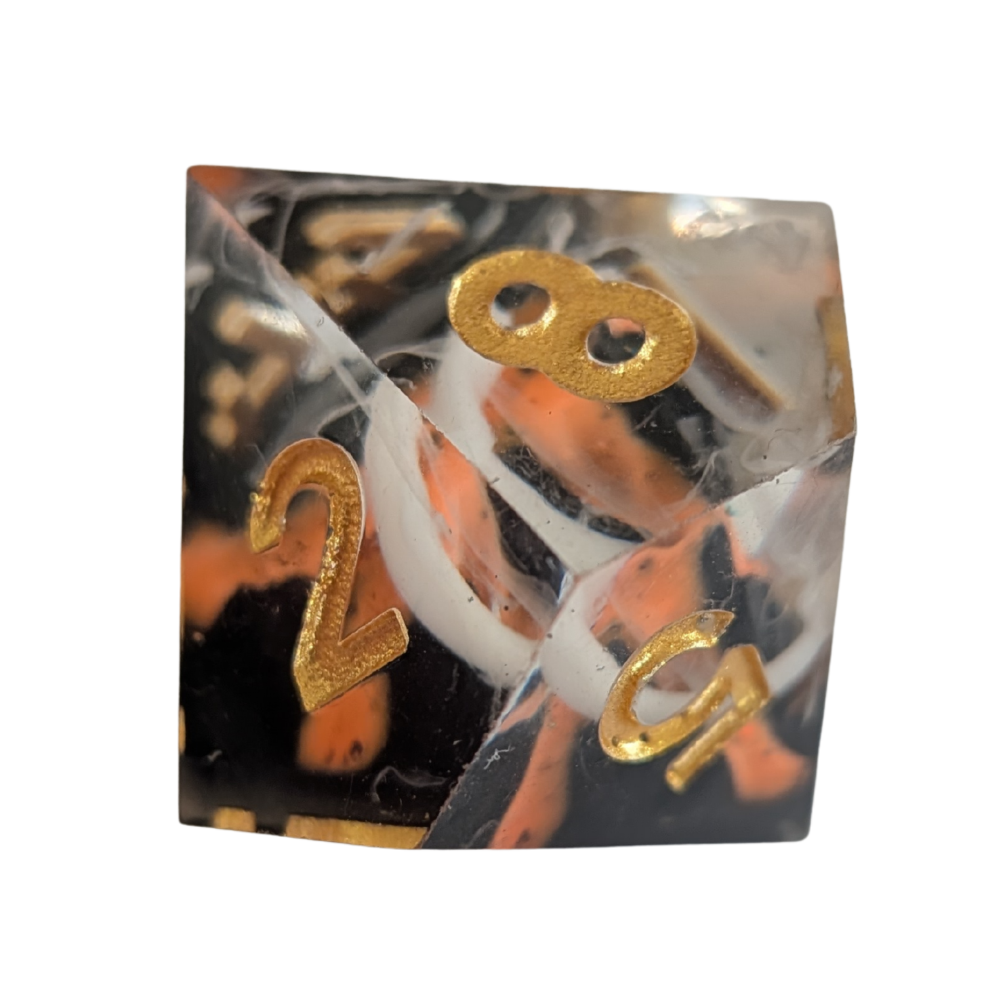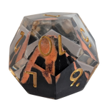 Dieses eindrucksvolle Würfelset fängt die rohe Kraft eines Vulkans ein. Die transparenten (clear) Würfel kombinieren tiefes schwarz mit leuchtendem orange, wodurch der Eindruck glühender Lava entsteht, die sich unter der Oberfläche bewegt.