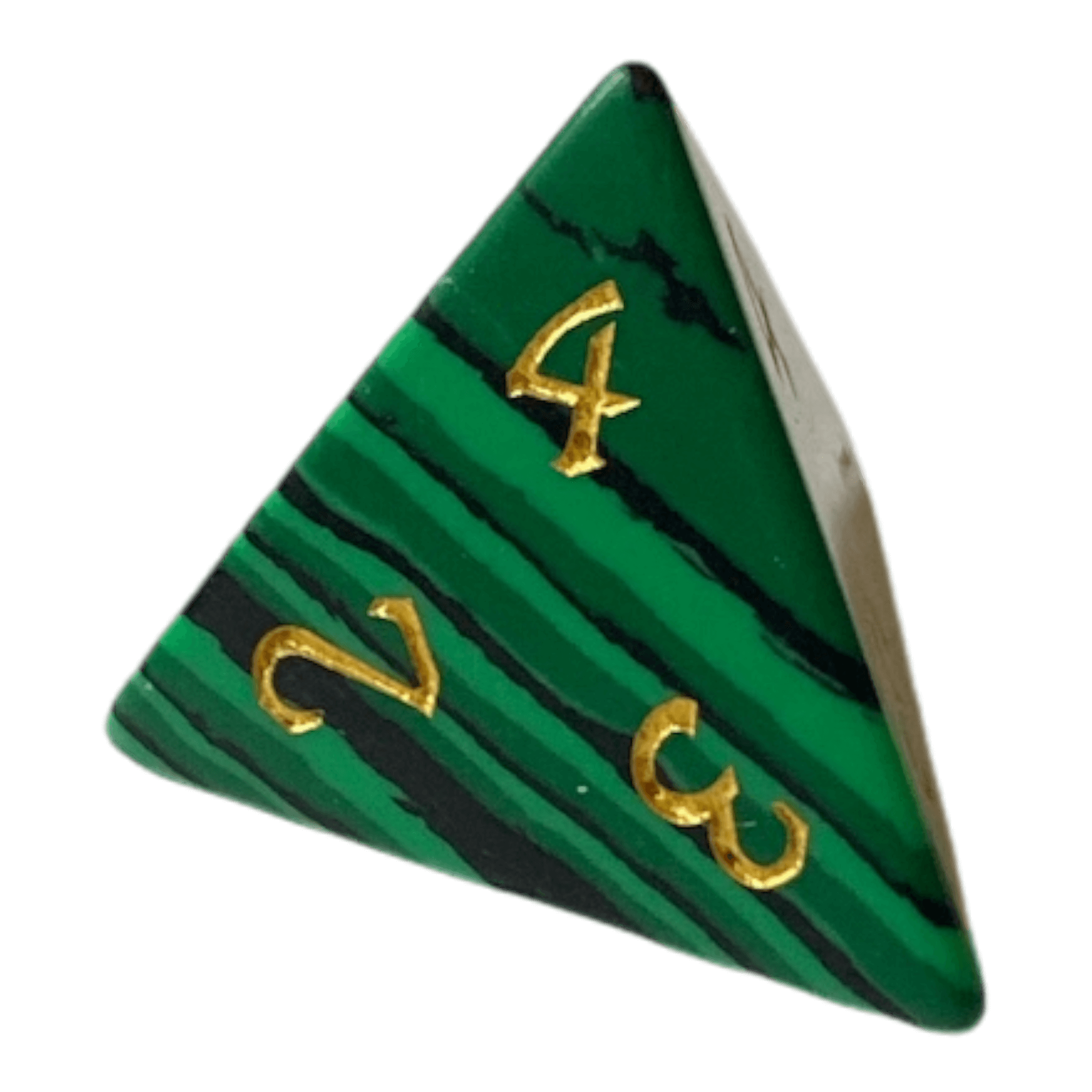 Ideal für Rollenspiele, Tabletop-Games oder als exklusives Sammlerstück – der W4 Malachit Würfel in Grün/Schwarz vereint Eleganz und Präzision in einem edlen Design.