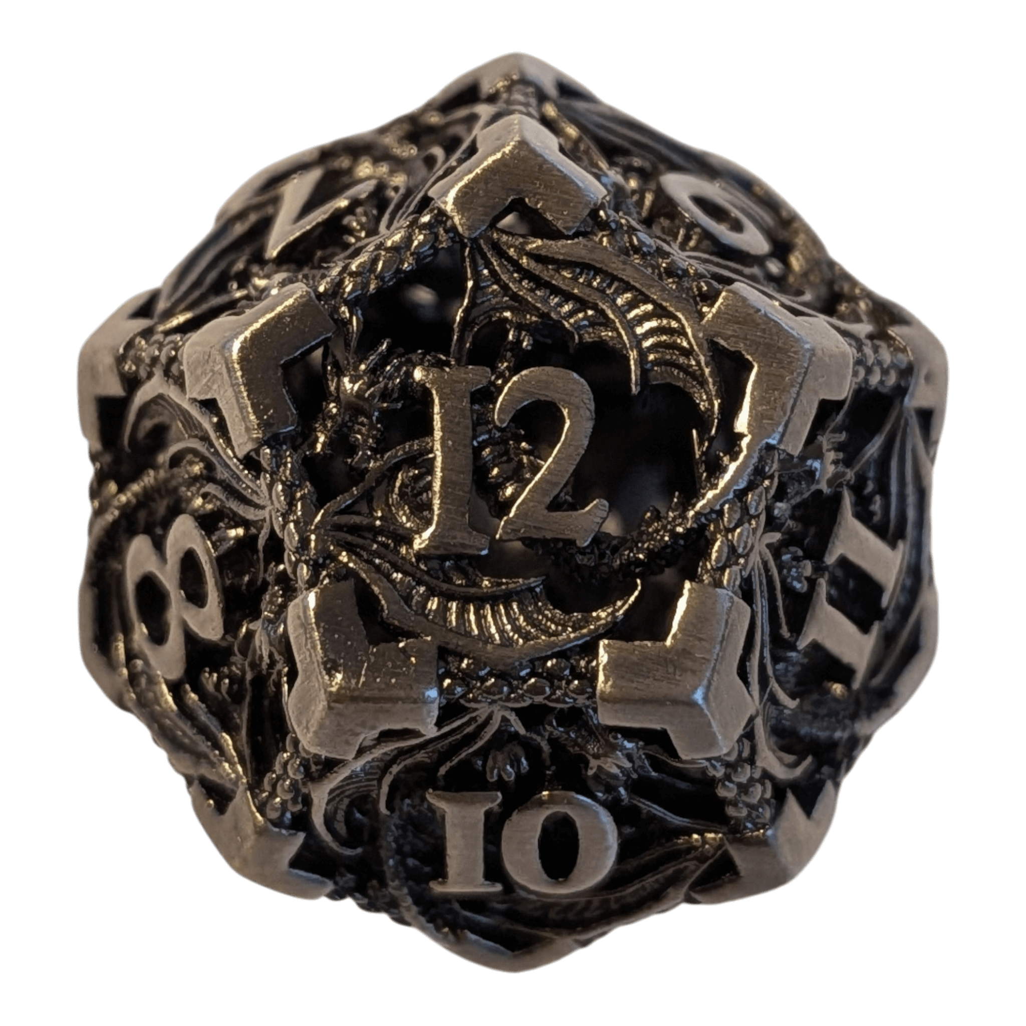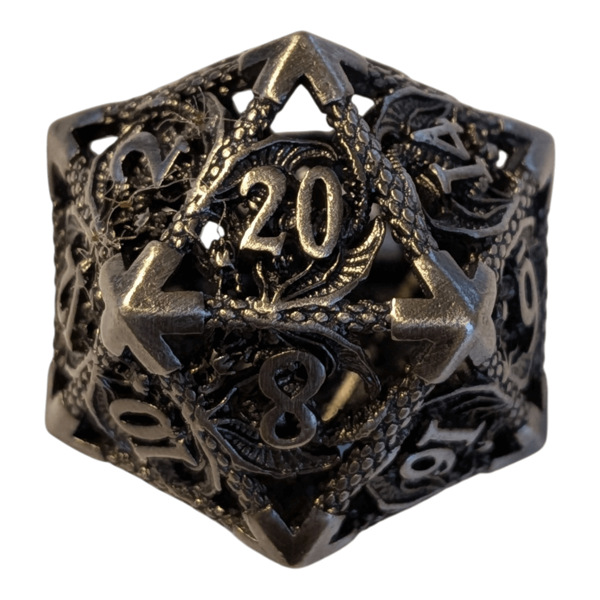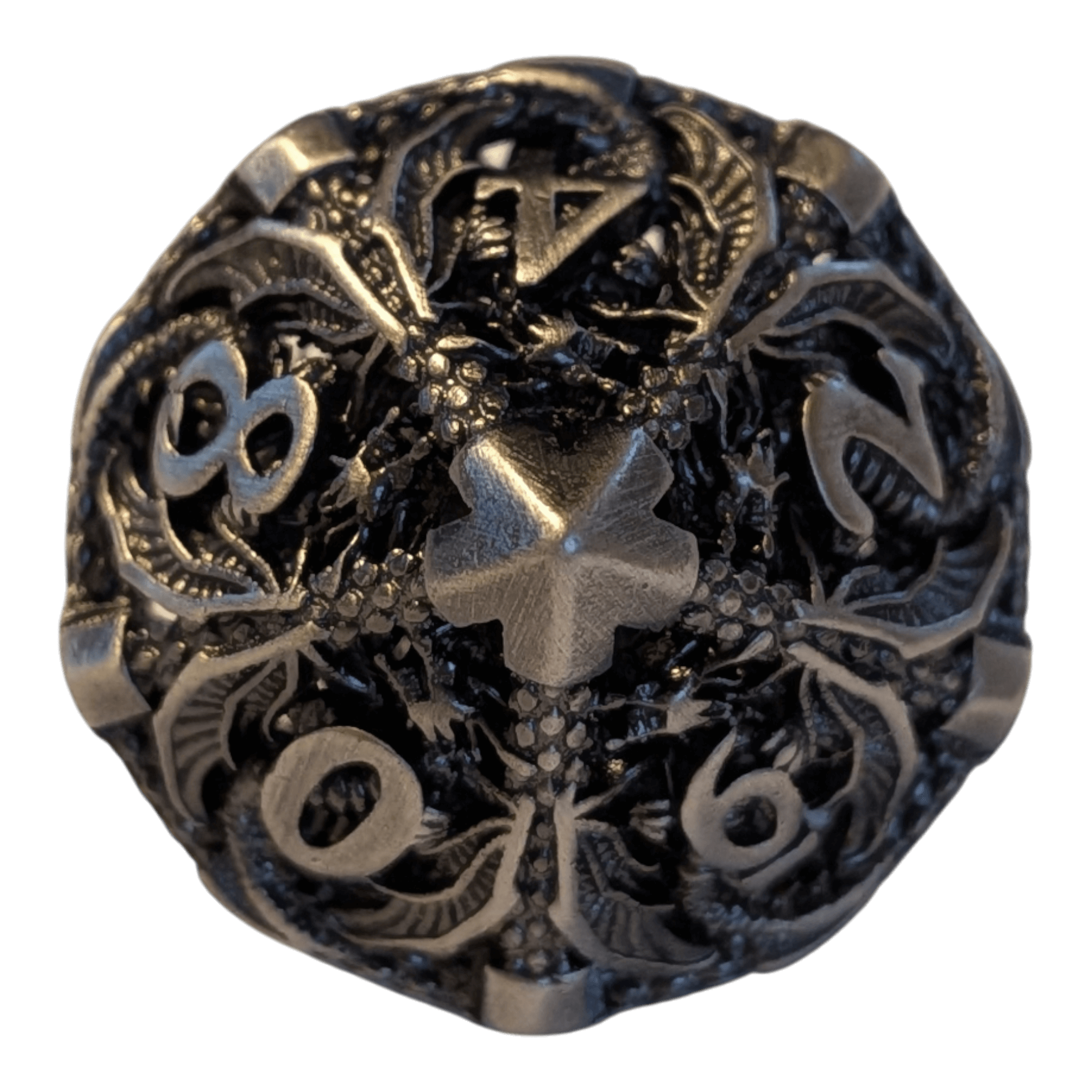 Die Oberfläche in Antik Silber sorgt für einen stilvollen, leicht gealterten Metalllook – perfekt für Fantasy-Abenteuer, Drachenkampagnen und epische Runden.
