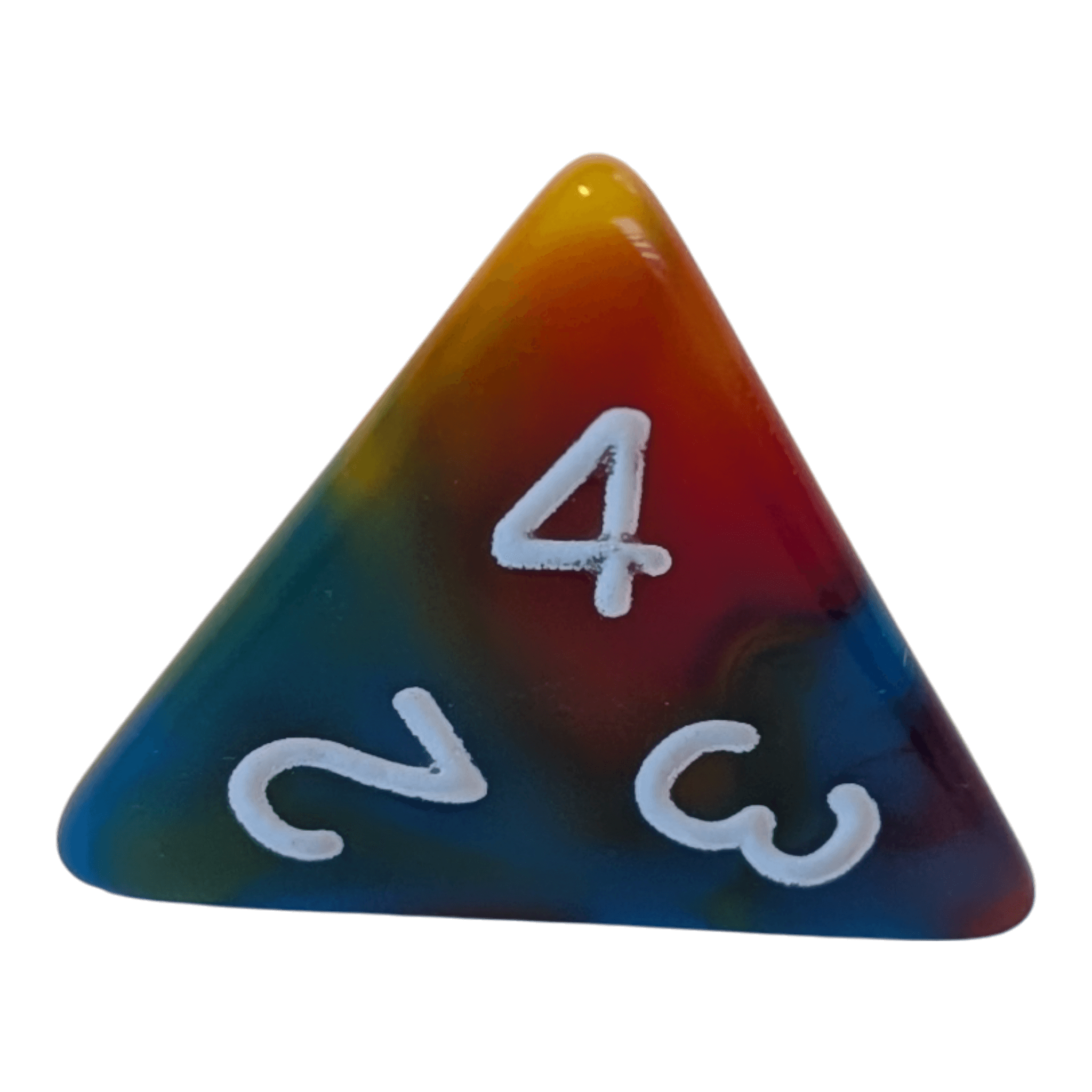 Der Multicolor W4 bringt Farbe und gute Laune an deinen Spieltisch. Mit seinem bunten Rainbow-Design vereint dieser W4 Würfel kräftige Farbtöne wie blau, rot, grün und gelb in einem harmonischen Regenbogen-Verlauf. Jeder Würfel wirkt lebendig und einzigartig – perfekt für Spieler, die auffällige Würfel lieben.