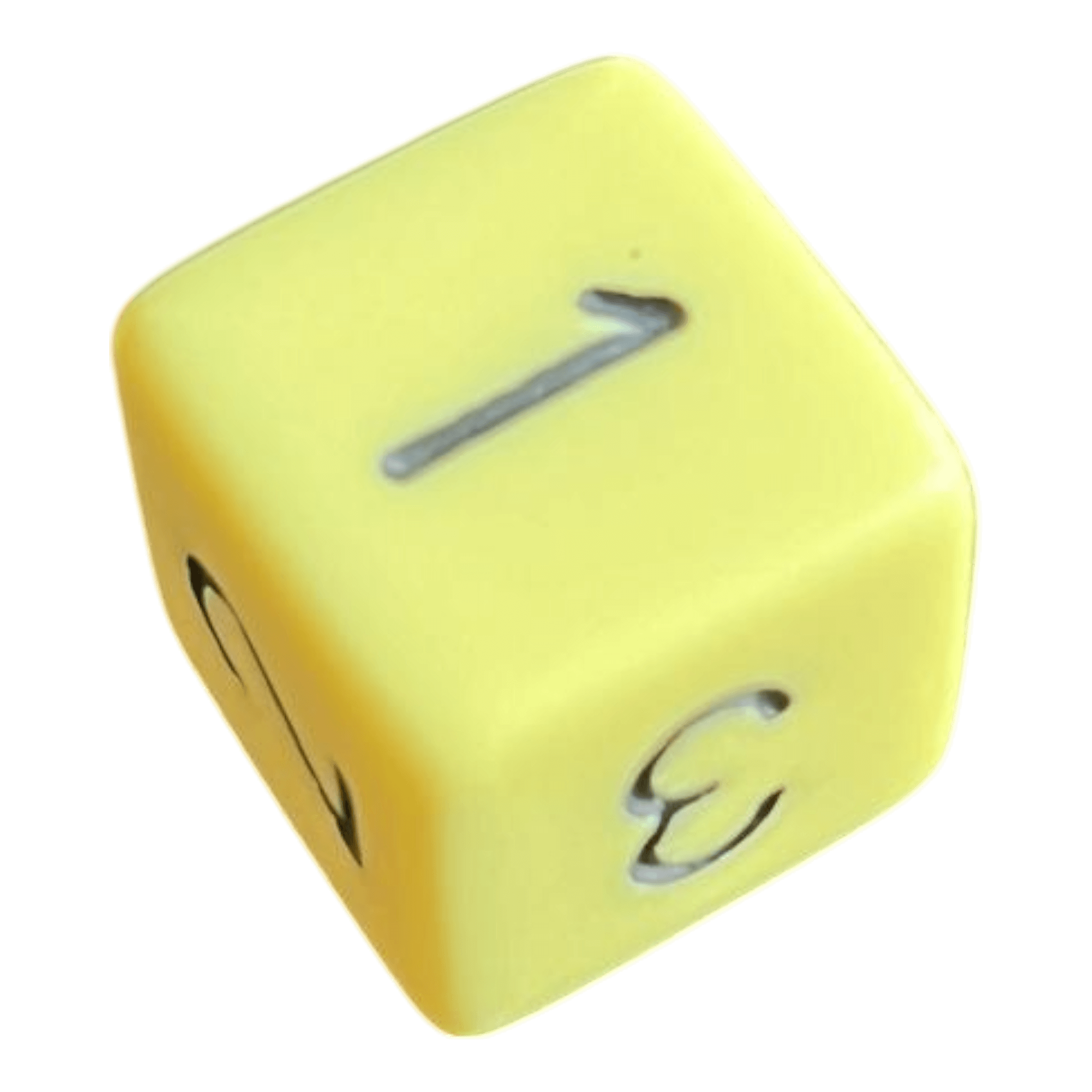 Der klassische sechsseitige Opaque Pastel Yellow/black Würfel ist in vielen Spielen ein Standardwerkzeug und bietet gleichmäßige Würfe mit gut lesbaren Ziffern.