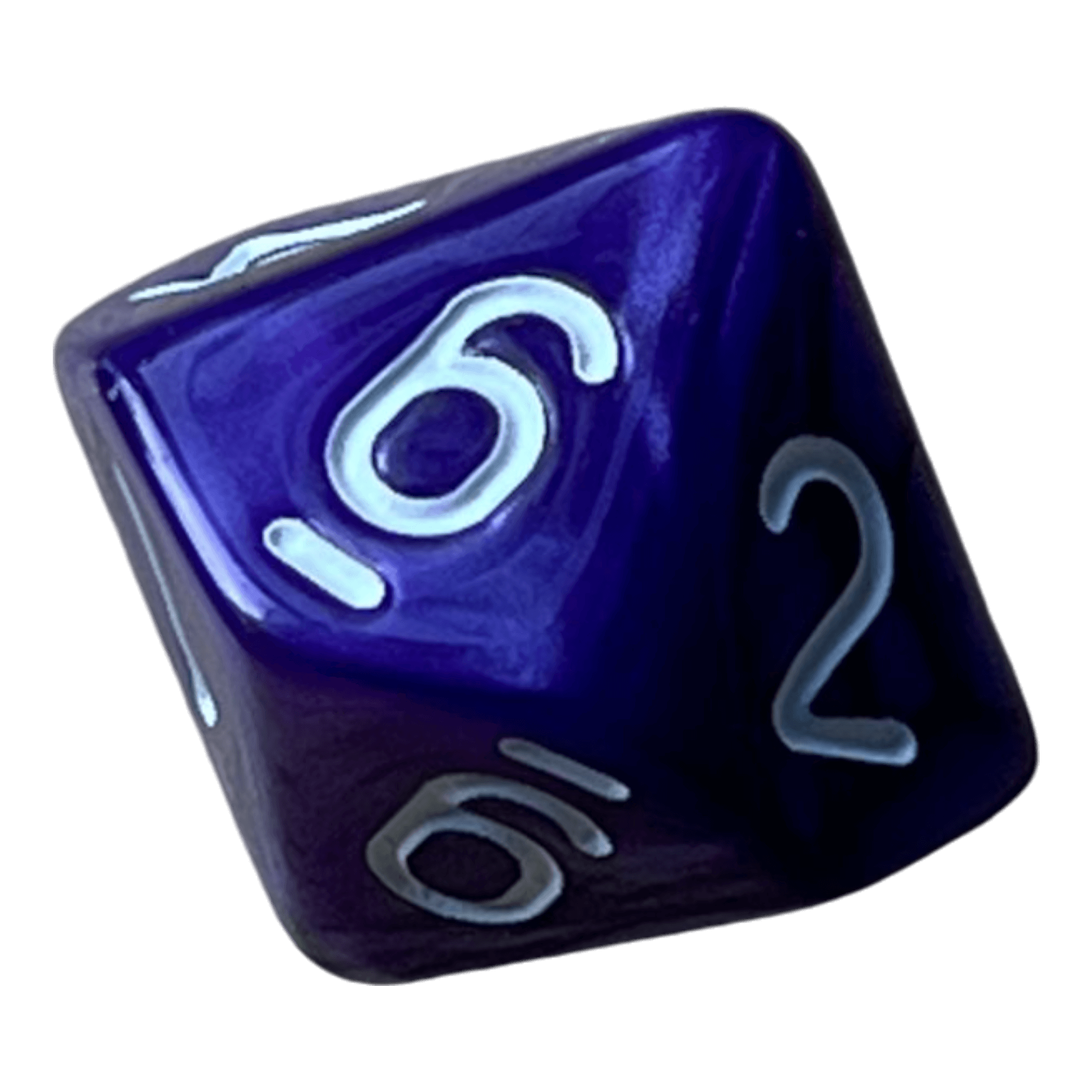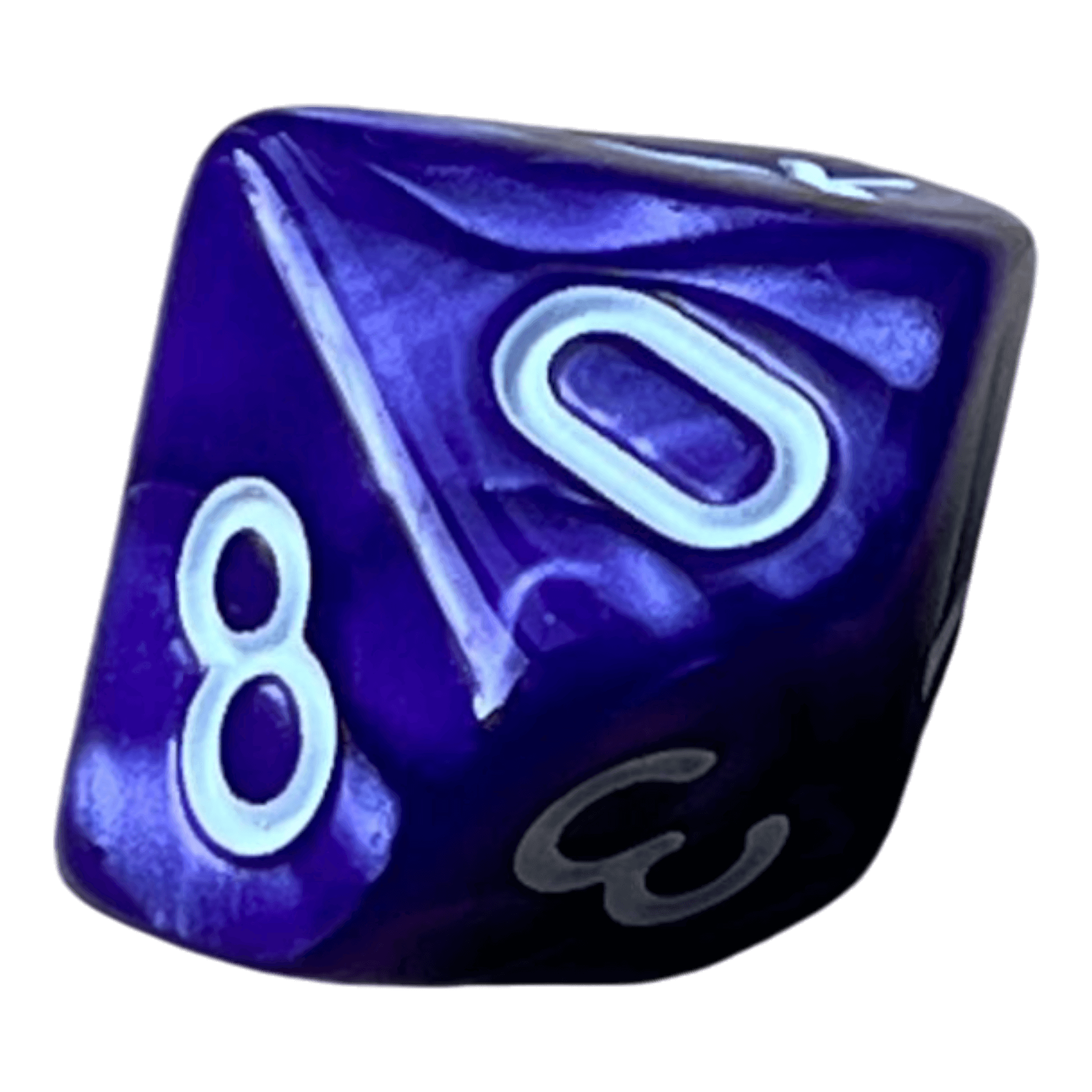 Dieser lila W10 bringt durch seinen schimmernden Perlmutt-Effekt eine besondere Optik ins Spiel. Der zarte Schimmer verleiht dem Würfel Tiefe, während die klaren, weißen Zahlen für gute Lesbarkeit sorgen, selbst bei schwachem Licht. Das auffällige Farbdesign sorgt dafür, dass dieser Würfel auf dem Spieltisch hervorsticht.