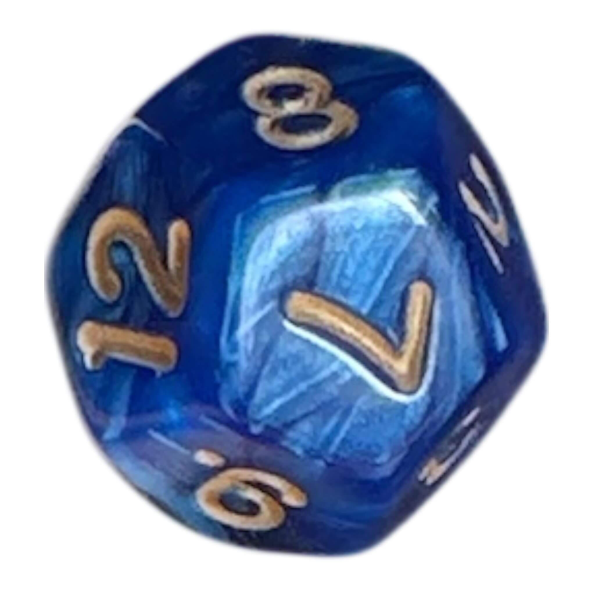 W12 Perlmutt Würfel – Blau mit goldenen Zahlen
