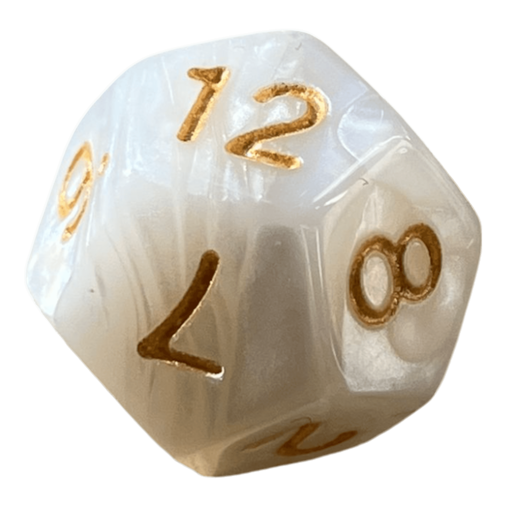 W12 Würfel mit Perlmutt-Effekt – Goldene Zahlen