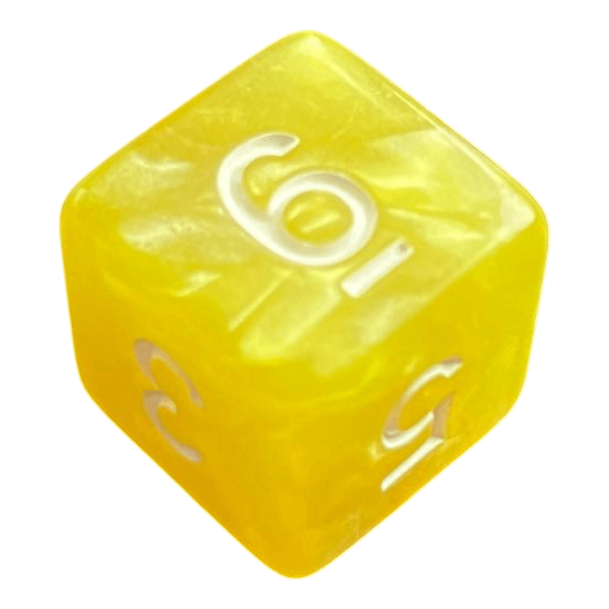 Gelber W6 Würfel mit Perlmutt-Effekt – Weißen Zahlen