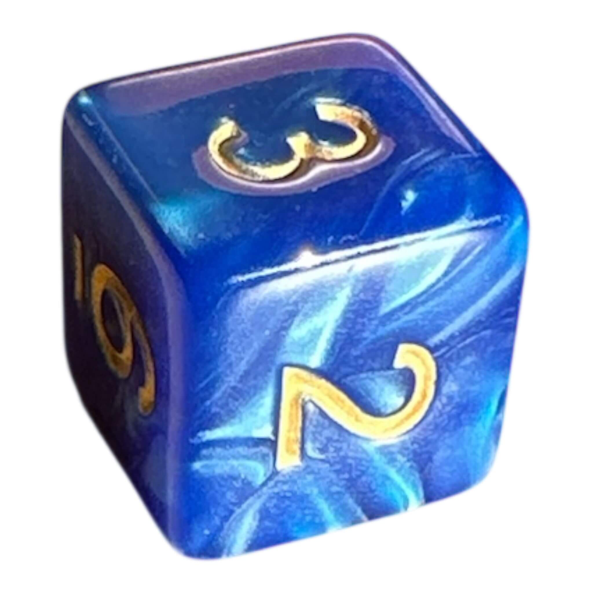 W6 Perlmutt Würfel – Blau mit goldenen Augen