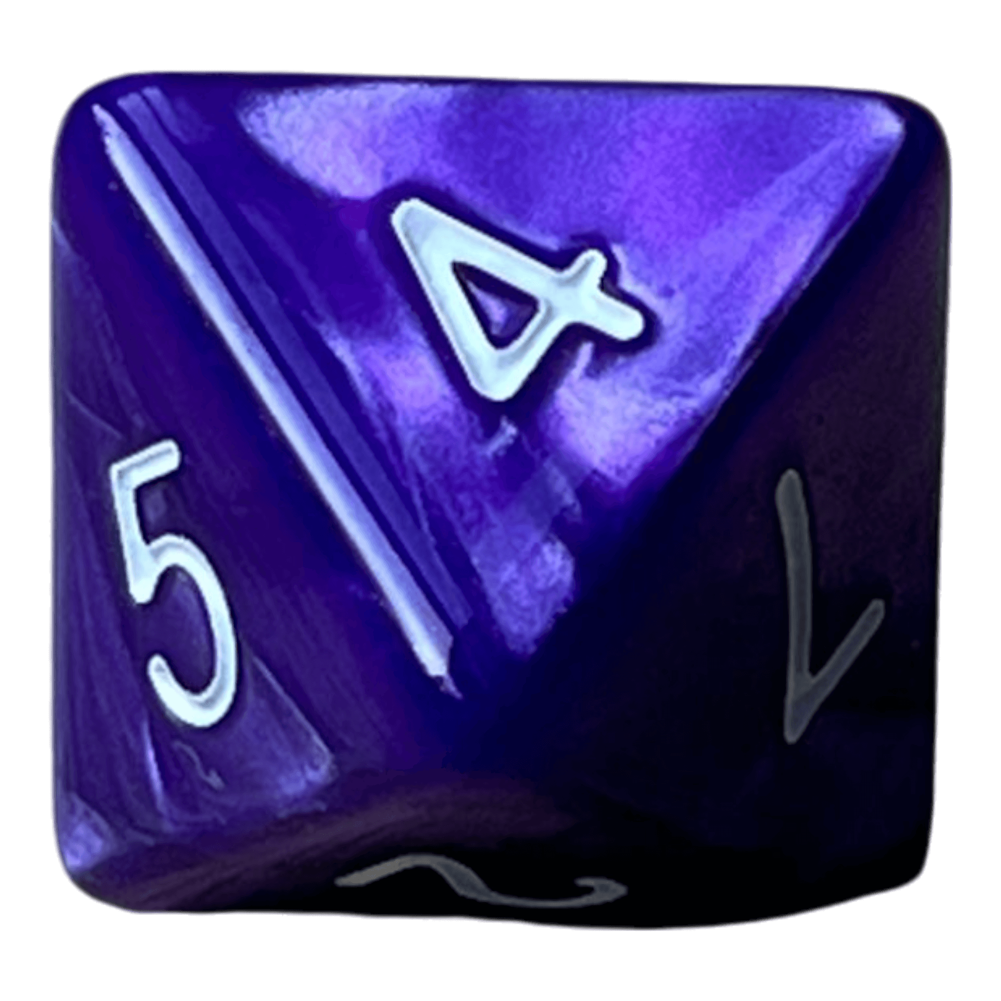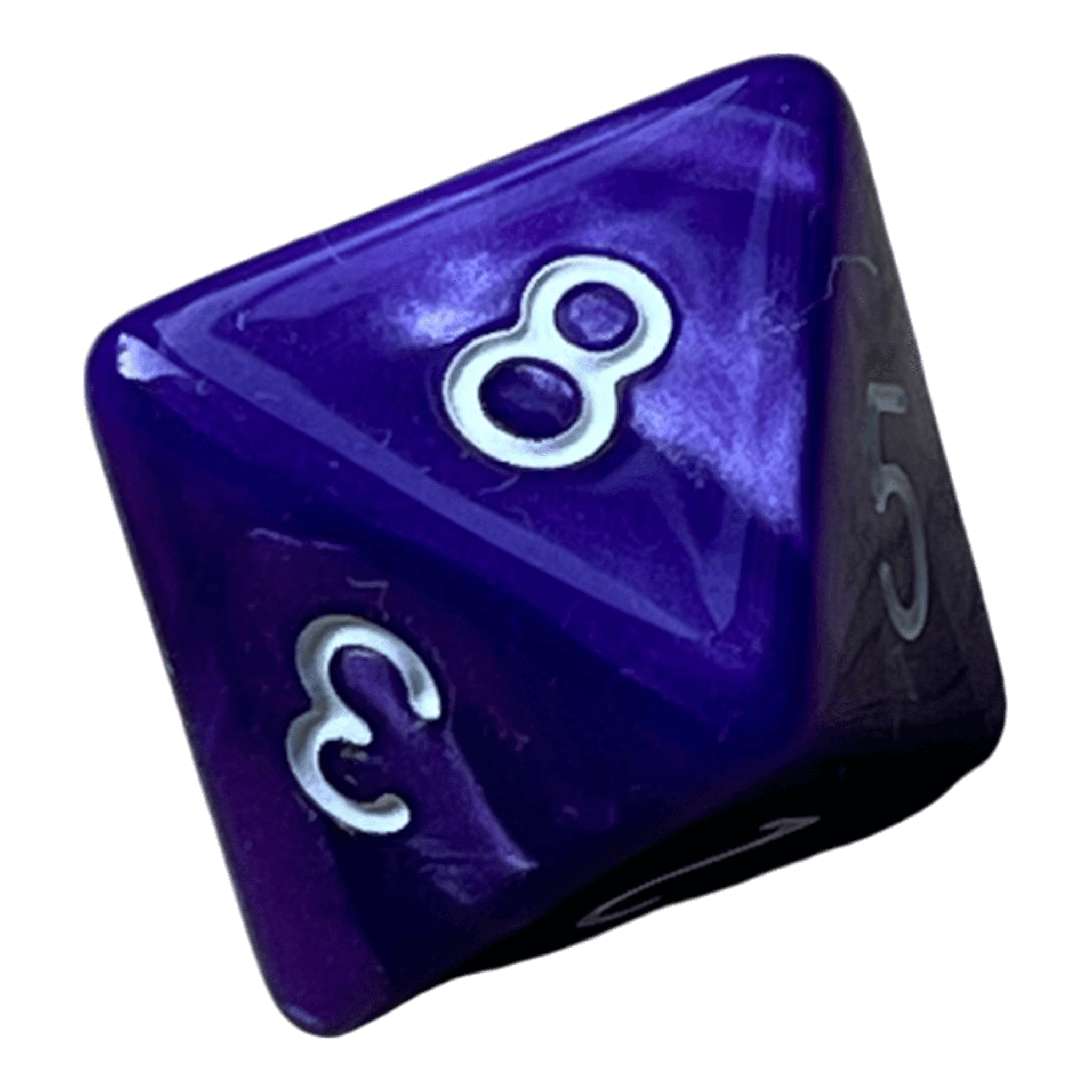 Dieser lila W8 aus Kunststoff besticht durch seinen sanften Perlmutt-Effekt, der je nach Lichteinfall dezente Schattierungen erzeugt. Die weißen Zahlen bieten einen deutlichen Kontrast zur Oberfläche und sind leicht ablesbar, was ihn sowohl ästhetisch als auch praktisch für den Spieleinsatz macht.
