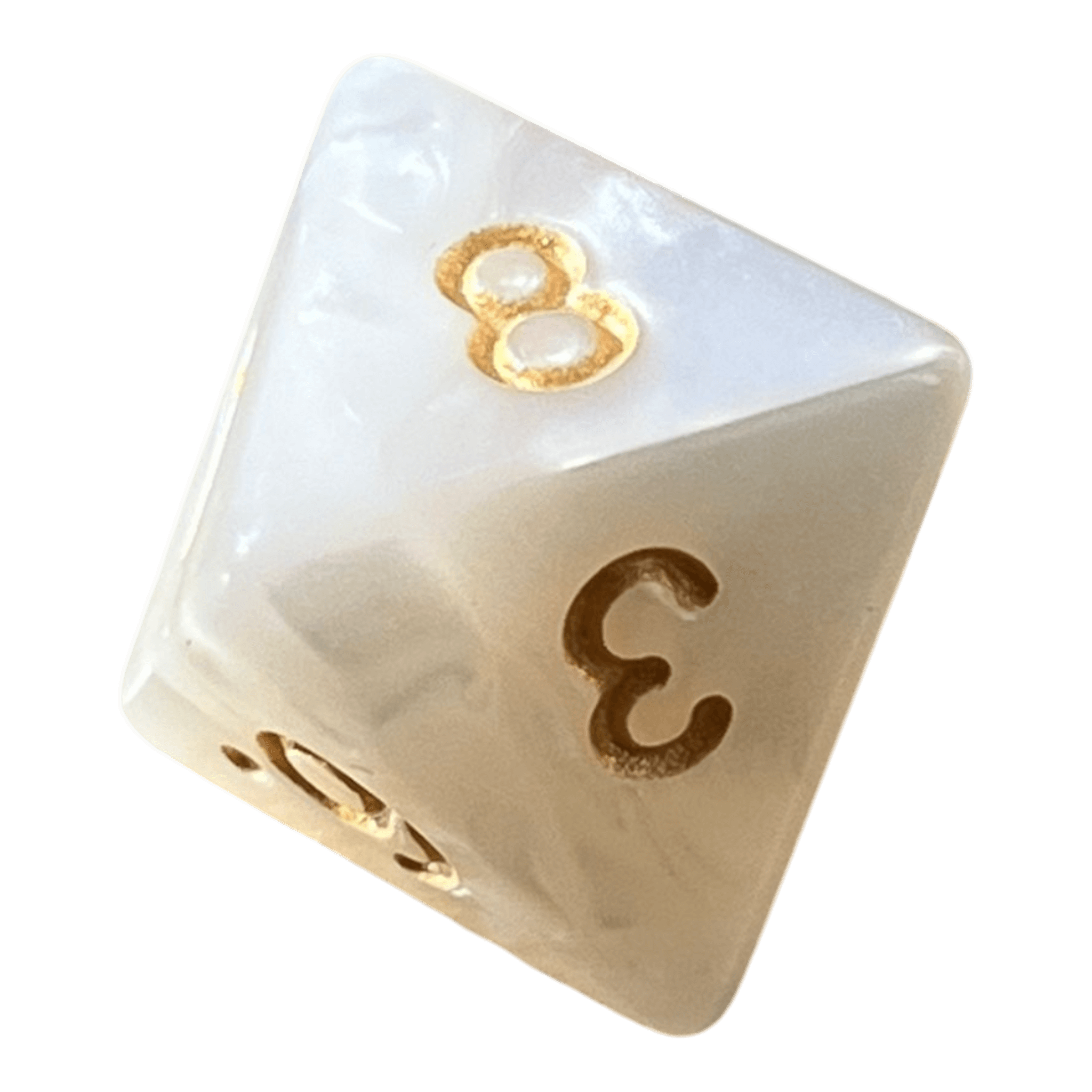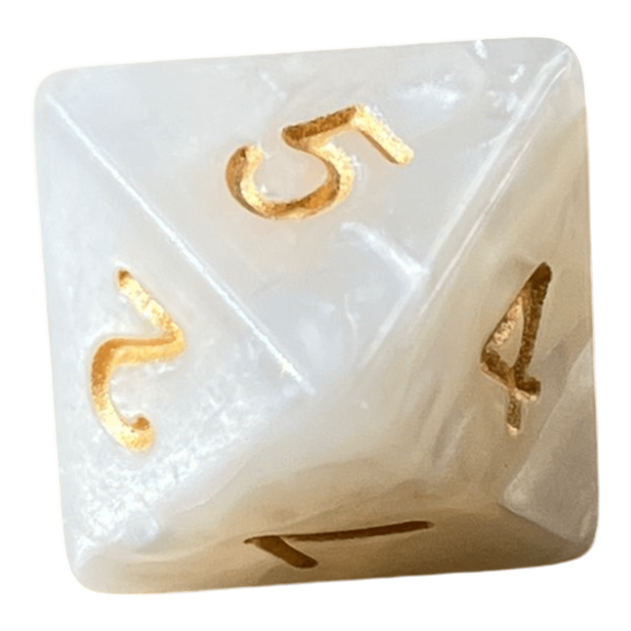 W8 Würfel mit Perlmutt-Effekt – Goldene Zahlen