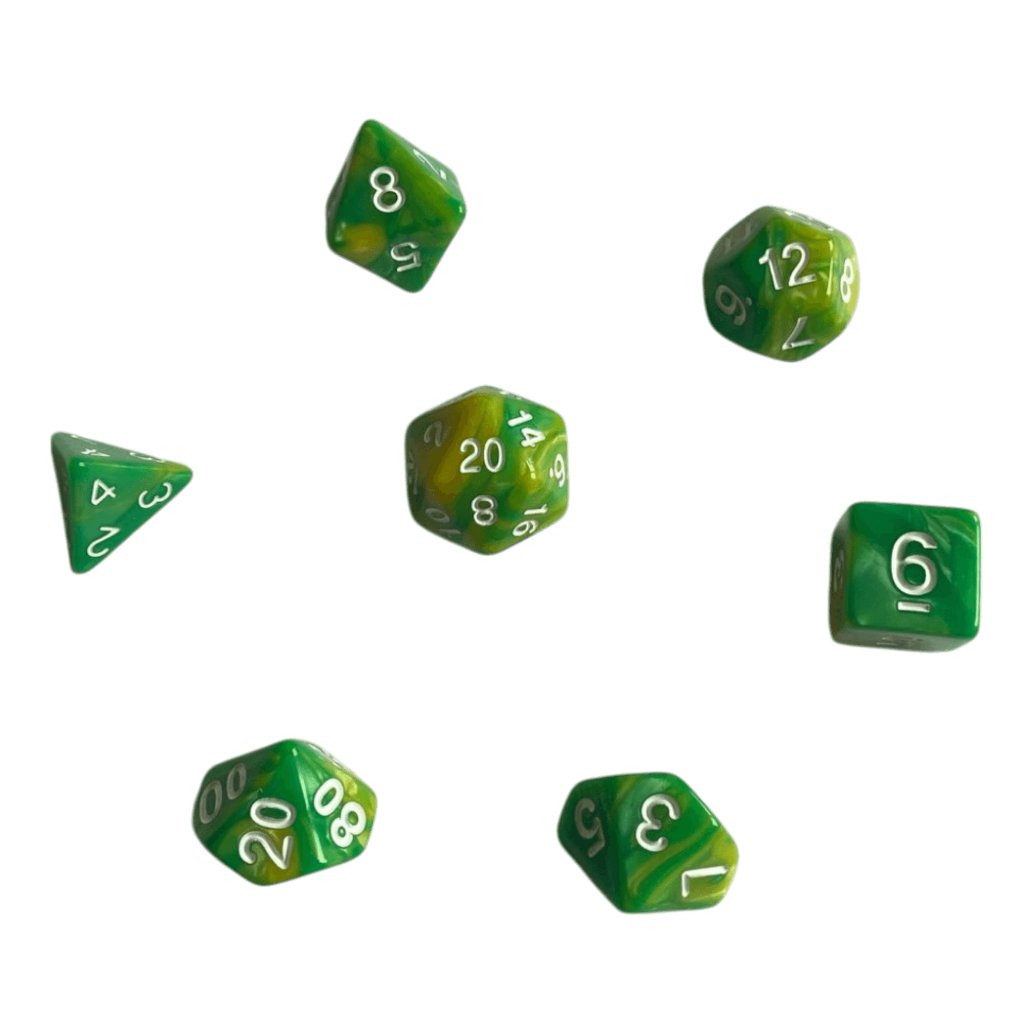 🎲 Perlmutt Würfelset in Gelb & Grün – Farbige Eleganz für dein Spiel