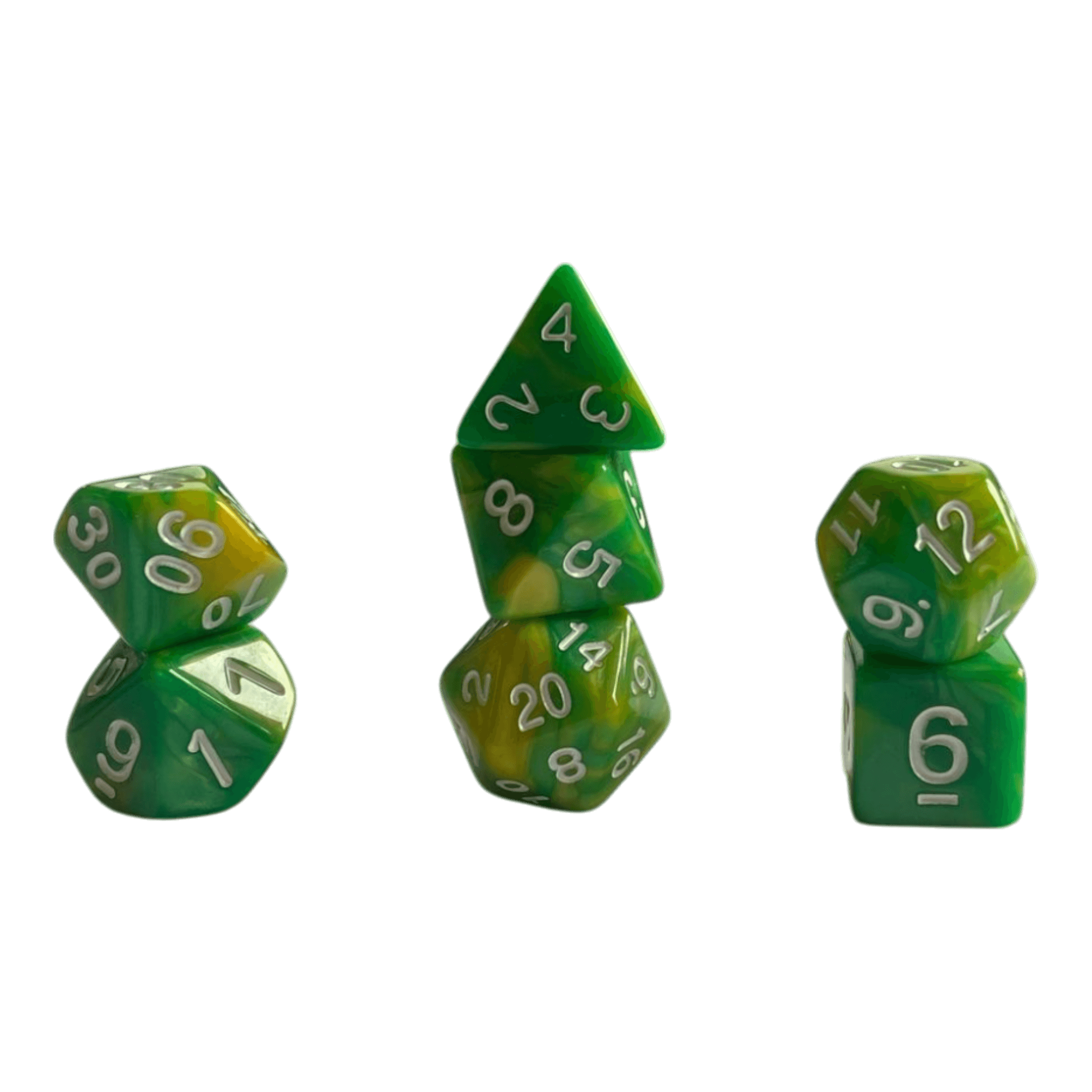 Dieses Perlmutt Würfelset in den frischen Farben Gelb und Grün bringt Leichtigkeit und Stil an den Spieltisch. Die Perlmutt-Optik sorgt für schimmernde Effekte, die je nach Lichteinfall die Farbverläufe lebendig erscheinen lassen. Die weißen Zahlen bilden einen deutlichen Kontrast und ermöglichen eine gute Lesbarkeit, selbst bei schnellen Spielzügen.