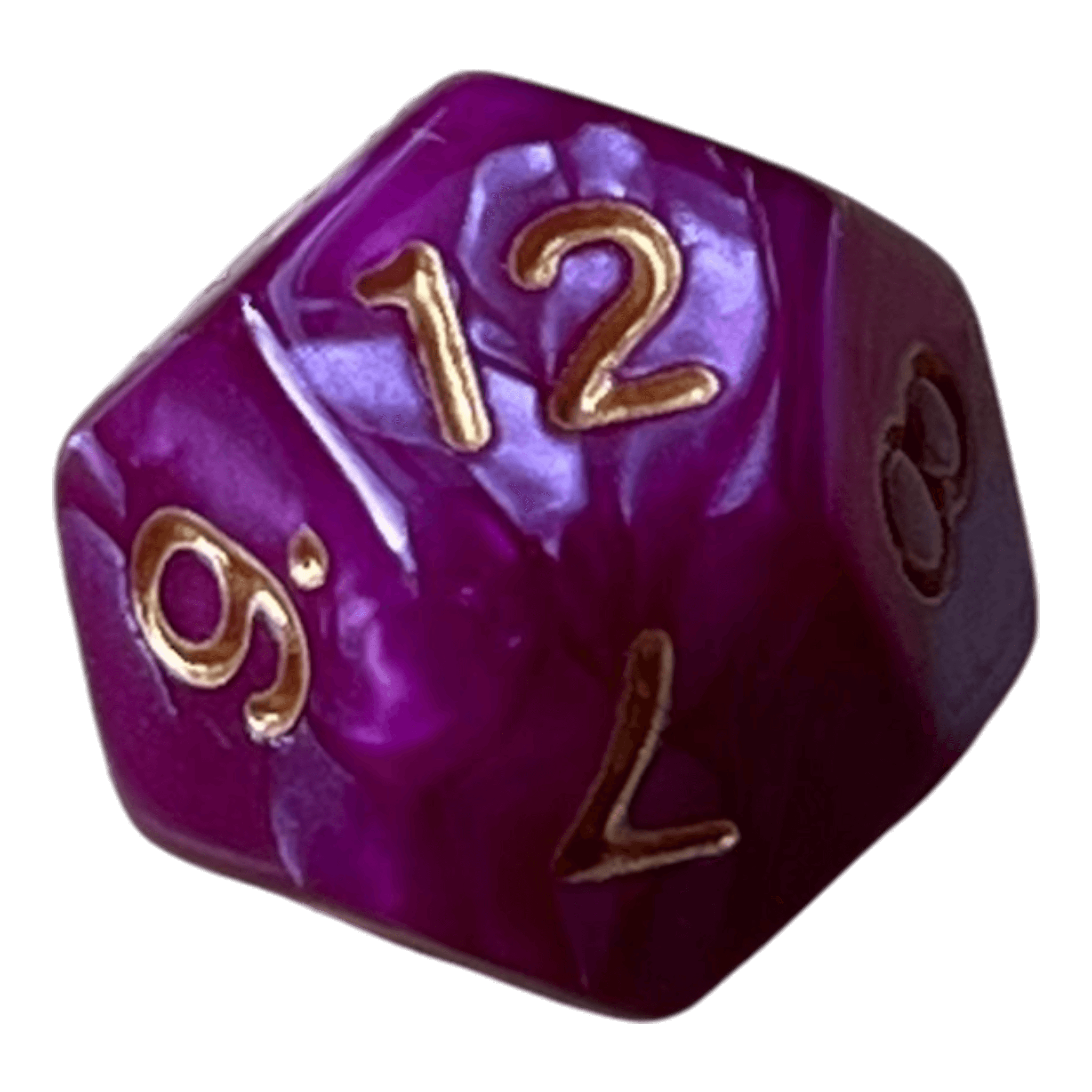 Pinker W12 Würfel mit Perlmutt-Effekt – Goldene Zahlen