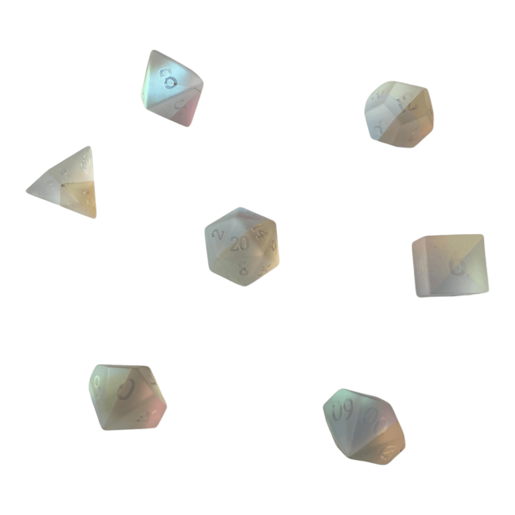 Perfekt für Rollenspiele, Tabletop-Games oder als stilvolles Sammlerstück – dieses Würfelset bringt Licht, Farbe und Eleganz in perfekter Harmonie auf deinen Spieltisch.