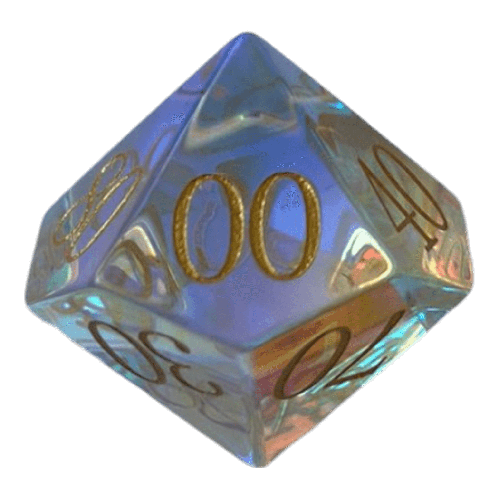 Perfekt für Rollenspiele, Tabletop-Games oder als exklusives Sammlerstück – der W10-0 Glaswürfel bringt Transparenz und schimmernde Farben auf deinen Spieltisch.