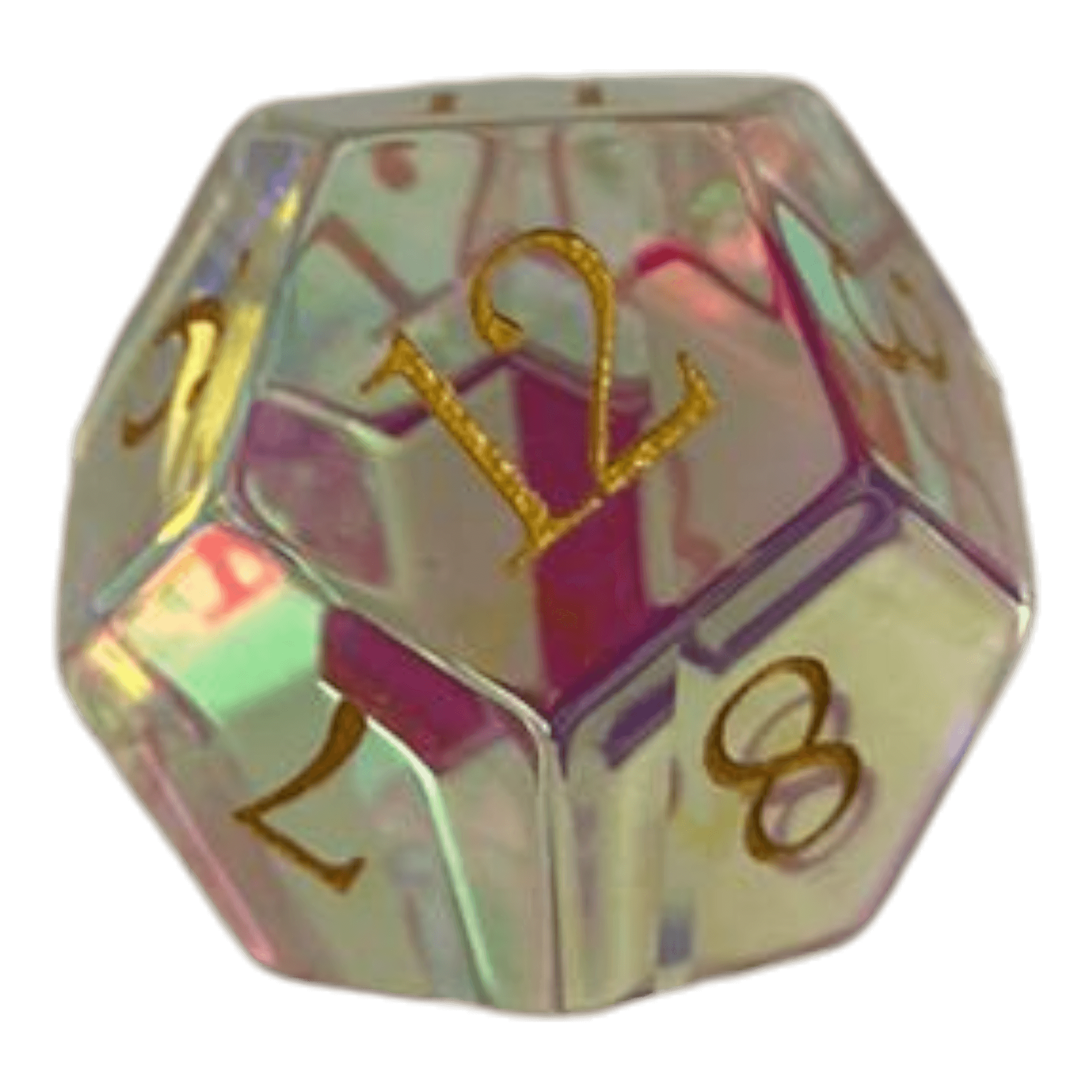 Ideal für Rollenspiele, Tabletop-Games oder als edles Sammlerstück – der W12 Glaswürfel verbindet Regenbogenfarben und Transparenz auf stilvolle Weise.