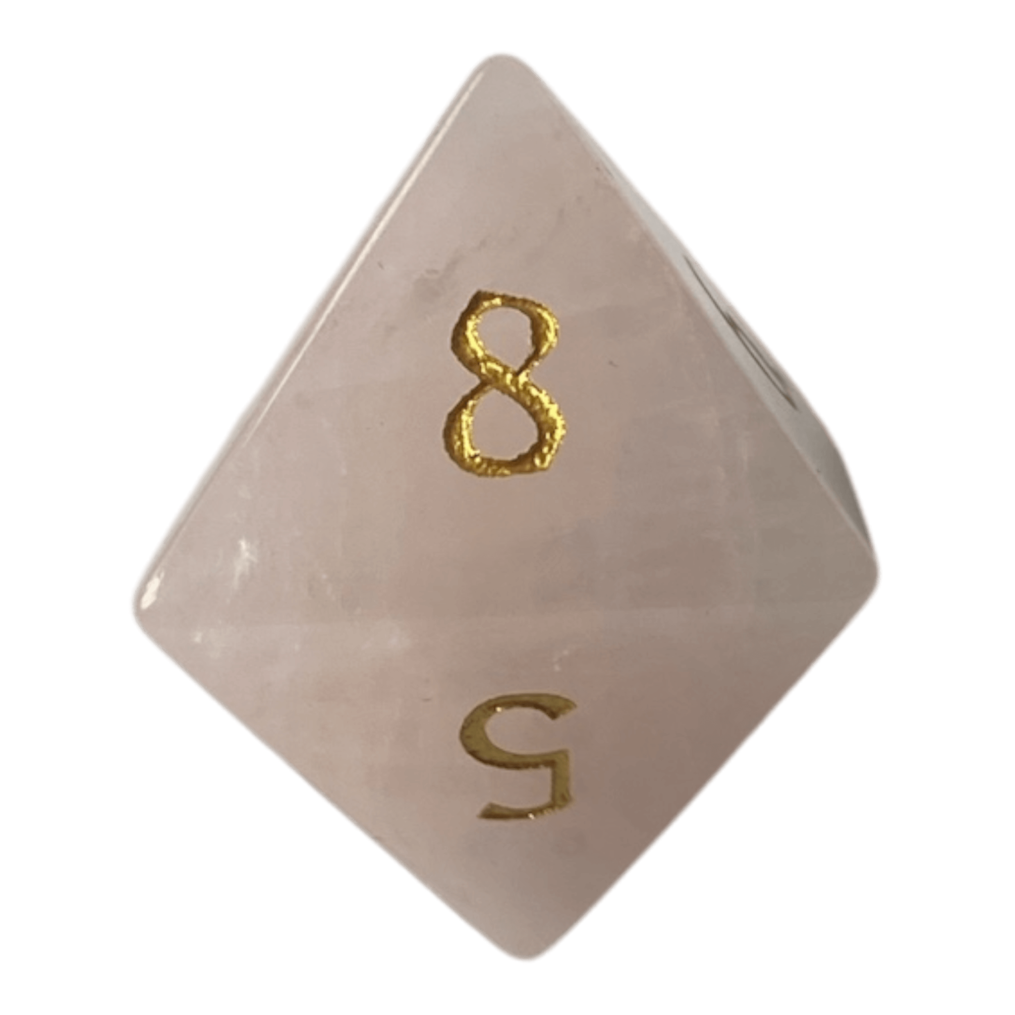 Perfekt für Rollenspiele, Tabletop-Games oder als wertvolles Sammlerstück – der W8 Rosenquarz Würfel in Rosa bringt edle Ästhetik und erstklassige Funktionalität auf deinen Spieltisch.