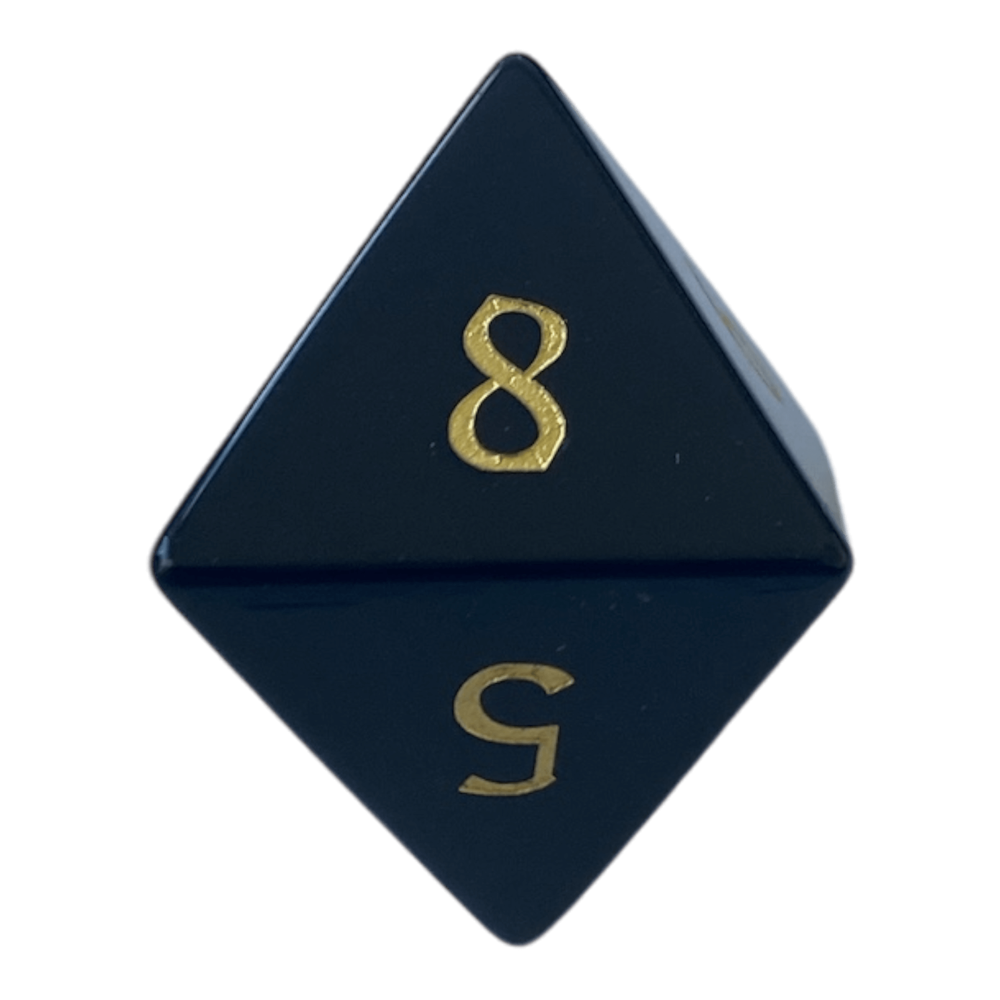 W8 Obsidian Edelsteinwürfel in Schwarz – Hochwertige Edelsteinverarbeitung mit goldenen Nummern