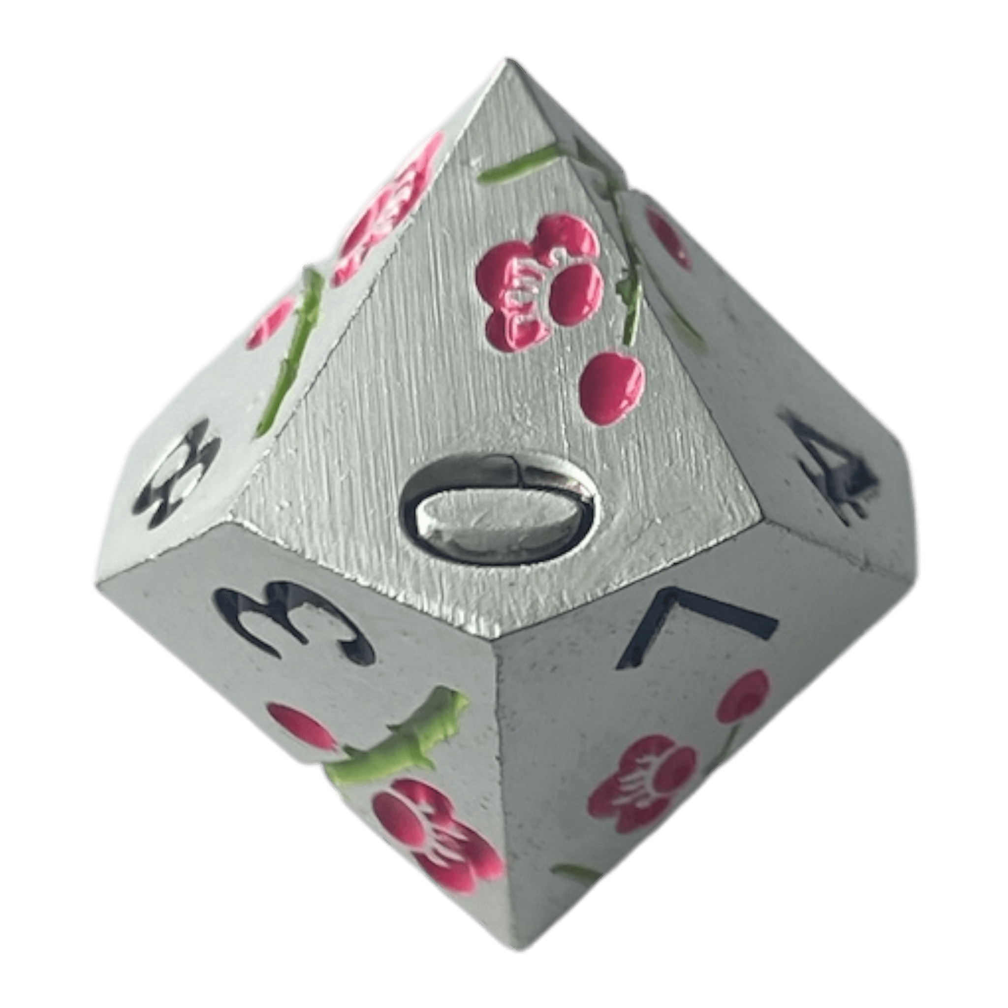 Ideal für Rollenspiele, Tabletop-Games oder als exklusives Sammlerstück – der W10 Blumen Metallwürfel in Silber verbindet stilvolles Design und höchste Funktionalität in jedem Wurf.