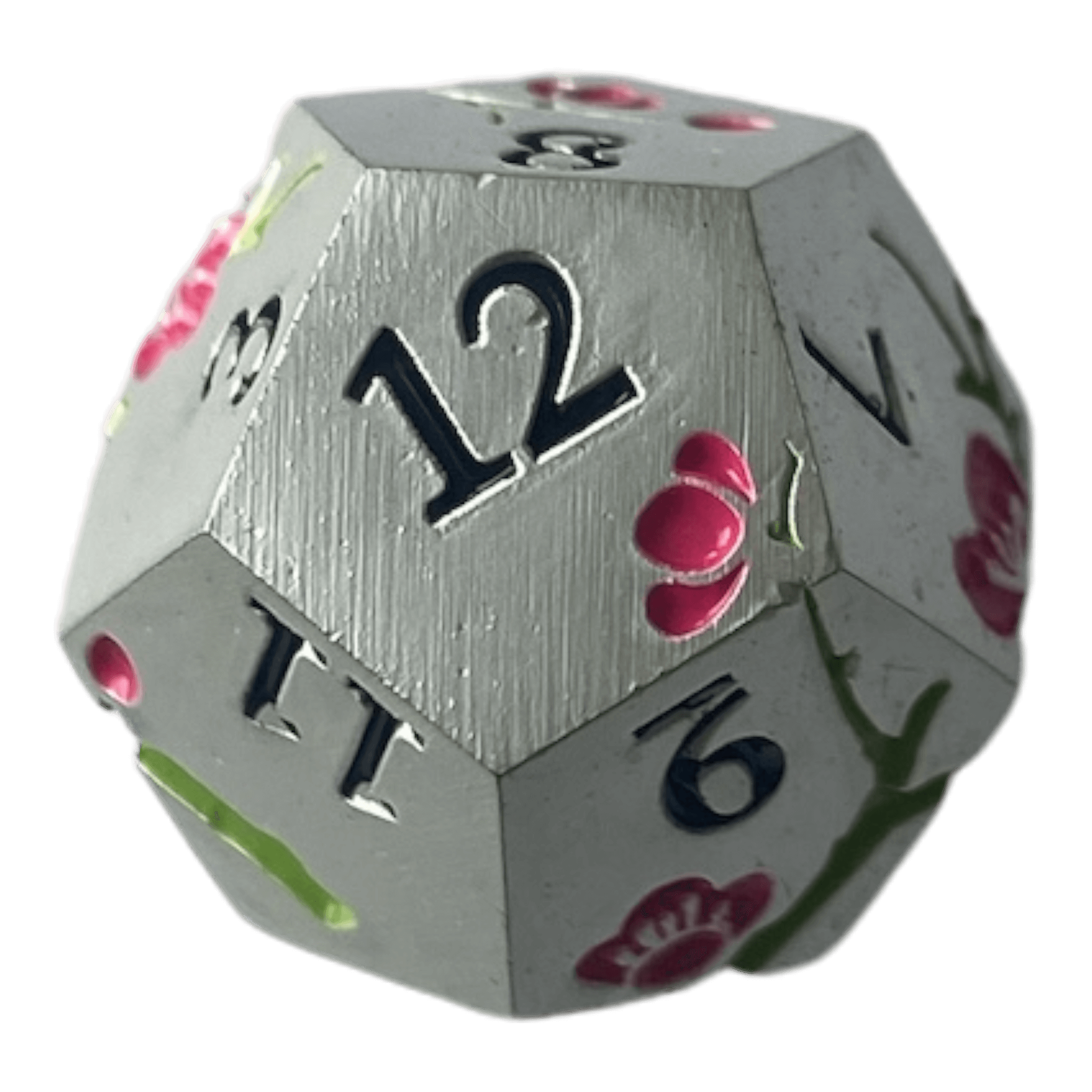 Ideal für Rollenspiele, Tabletop-Games oder als besonderes Sammlerstück – der W12 Blumen Metallwürfel in Silber verbindet eine stilvolle Optik mit erstklassiger Funktionalität.