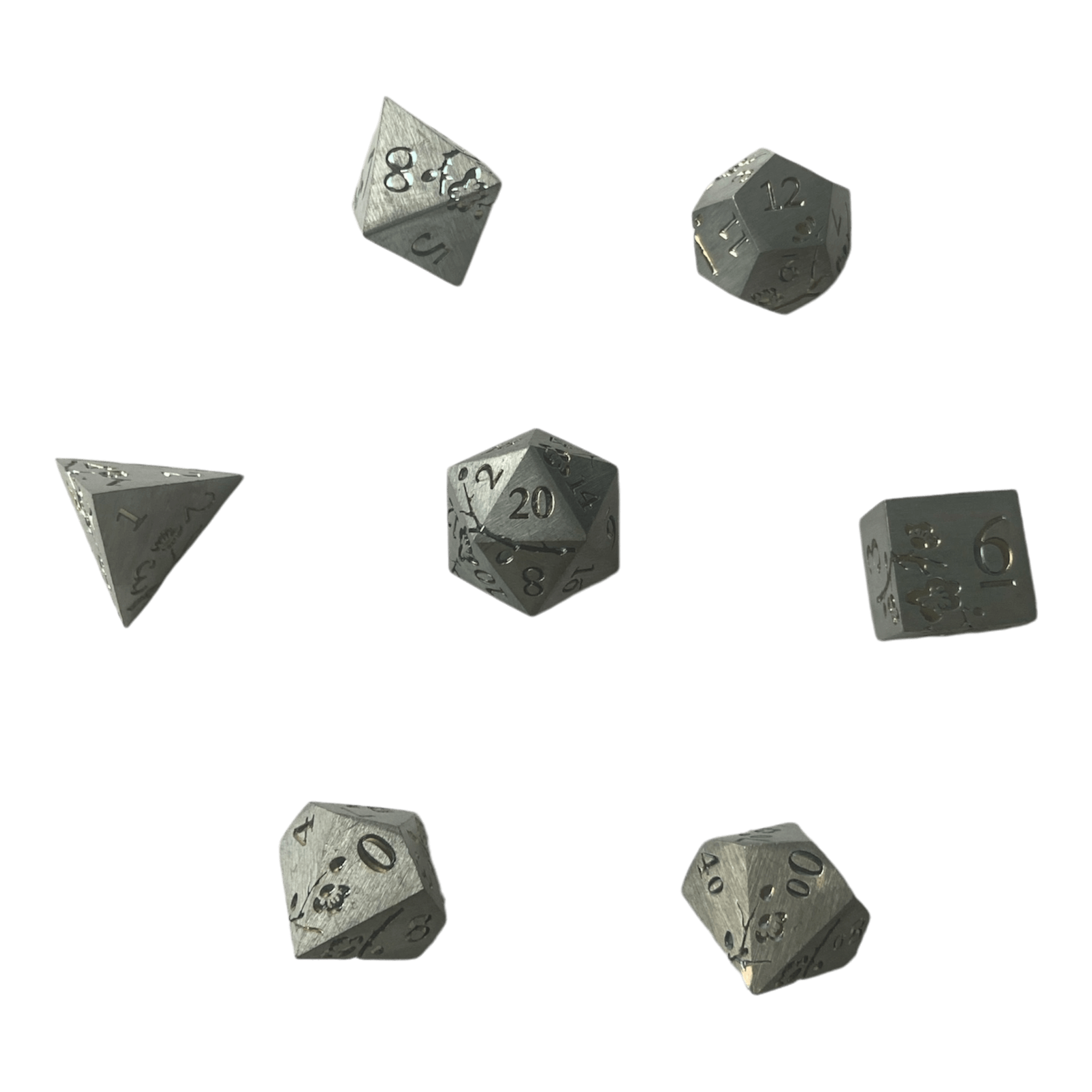 Hinweis: Nutze eine Spielmatte, um Oberflächen vor möglichen Beschädigungen durch das höhere Gewicht und die schärferen Kanten unserer Metall- und Edelsteinwürfel zu schützen.